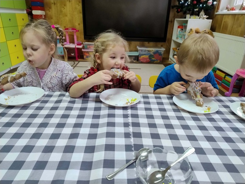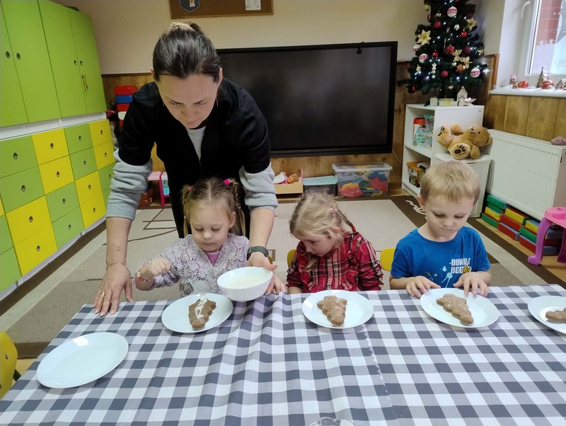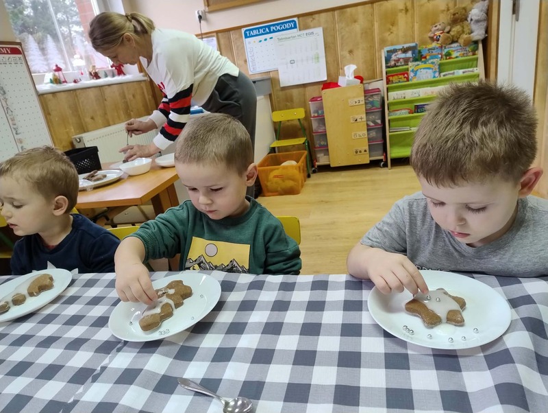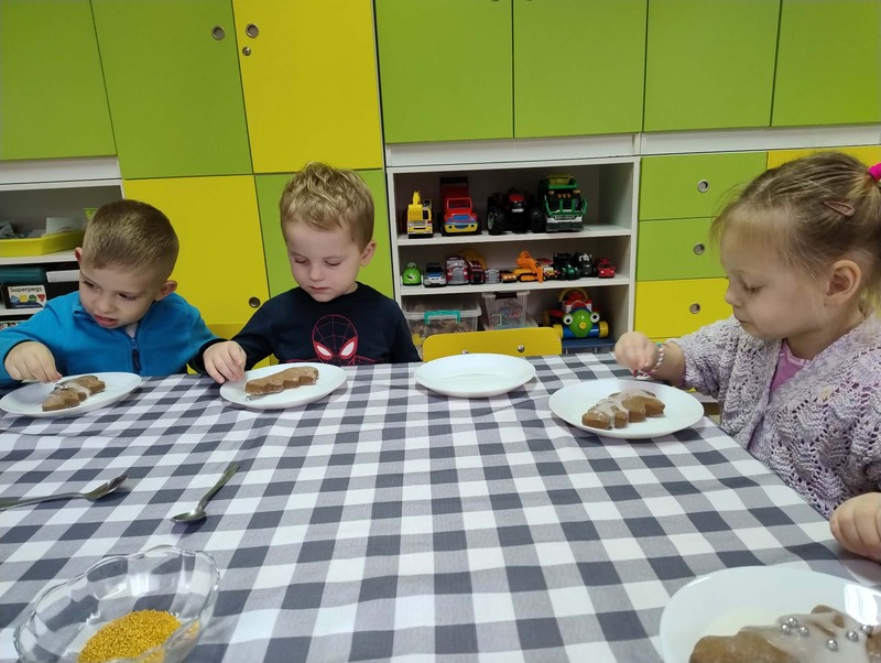 W grupie Żabki odbyły się kolejne zajęcia kulinarne. Tym razem dzieci z ogromnym zaangażowaniem ozdabiały pierniczki. Kolorowe lukry, posypki i dekoracje zamieniły ciasteczka w małe, słodkie dzieła sztuki.