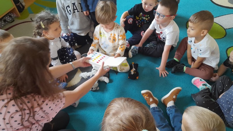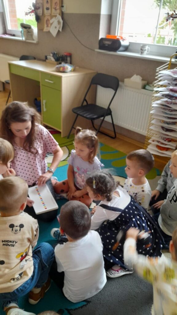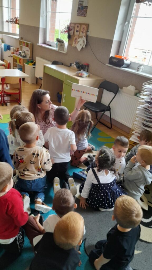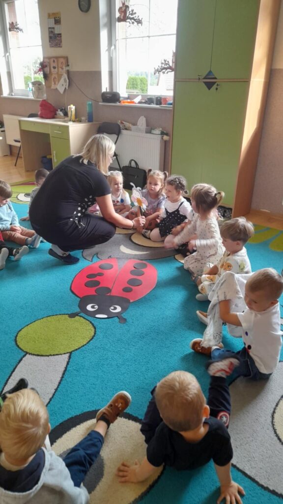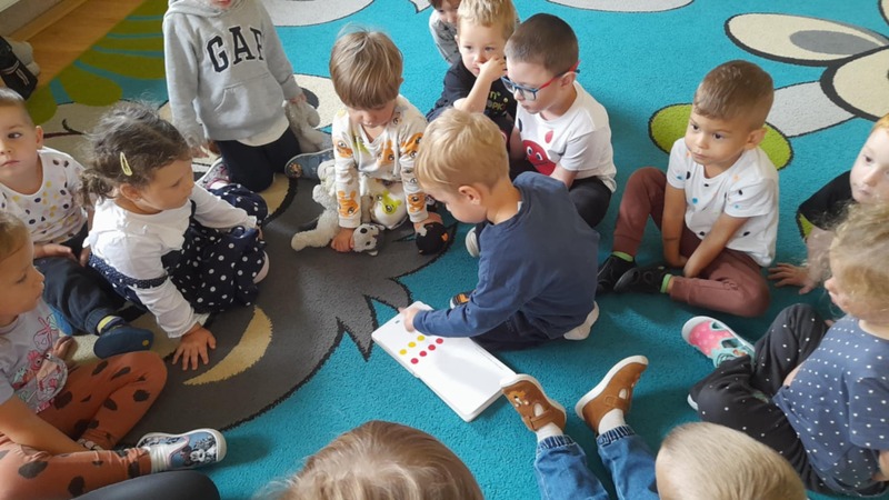 15 września Zajączki z radością obchodziły Międzynarodowy Dzień Kropki – święto kreatywności, zabawy i wiary w siebie. Dzieci przyszły ubrane w kolorowe stroje w kropeczki, co od razu wprowadziło wyjątkowy, radosny klimat w grupie. Poznaliśmy piosenkę o biedronce Felci, która zgubiła swoje kropeczki, a potem ruszyliśmy na ich poszukiwania. Były też wesołe zabawy ruchowe z kropeczkami – skoki, tańce i zadania na spostrzegawczość. Czytaliśmy książeczkę o kropkach i rozmawialiśmy o tym, że każdy ma w sobie coś wyjątkowego. Na zakończenie dzieci stworzyły kolorowe prace plastyczne z kropeczkami w roli głównej. To był dzień pełen uśmiechu, ruchu i twórczej energii!