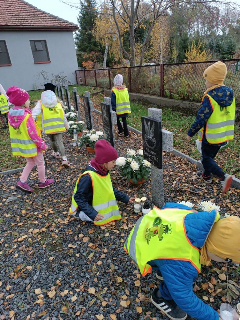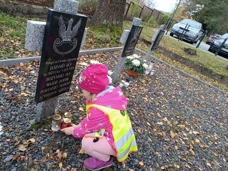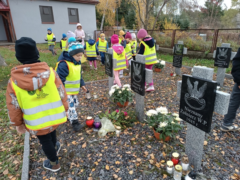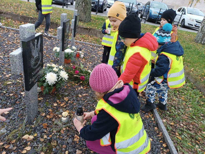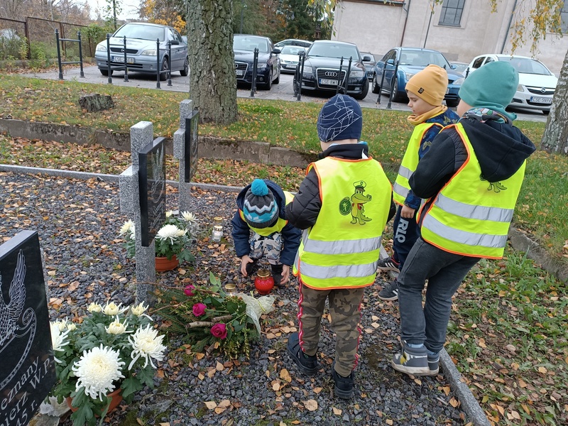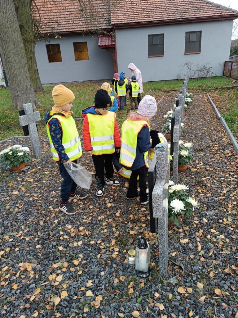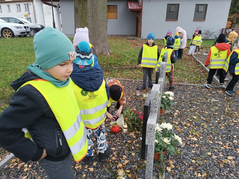 W ramach akcji „Szkoła Pamięta”, nasze przedszkole odwiedziło lokalny cmentarz. Dzieci zapaliły znicze na grobach, oddając hołd ważnym postaciom historycznym oraz ucząc się szacunku do miejsc pamięci i dziedzictwa narodowego. To wydarzenie stało się ważnym elementem w kształtowaniu postaw patriotycznych i edukacji historycznej wśród naszych najmłodszych.