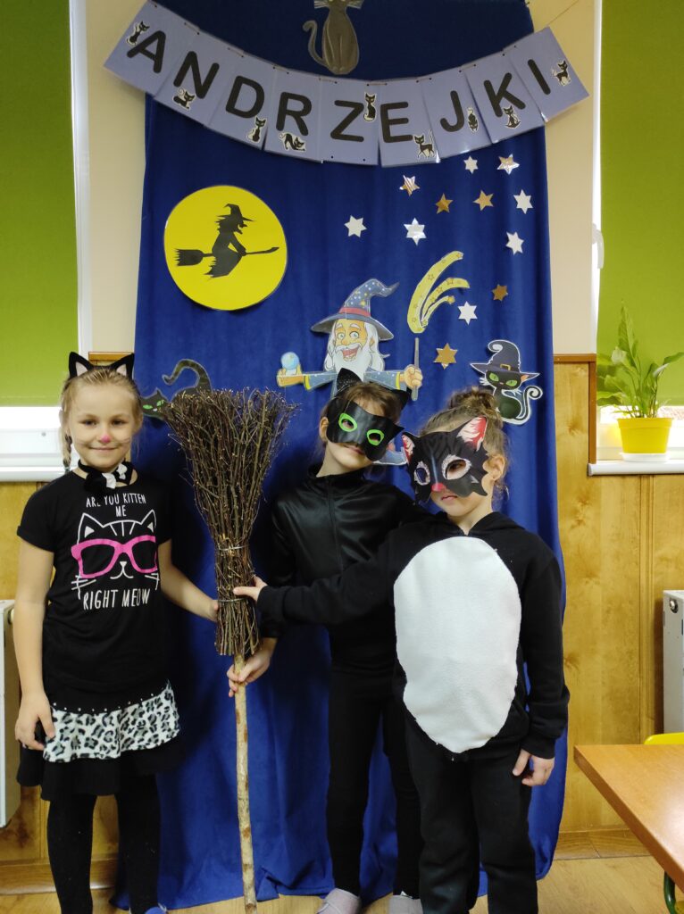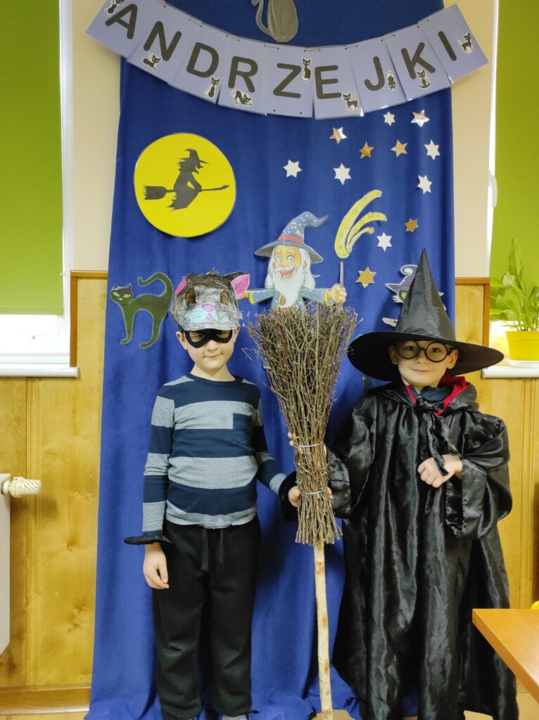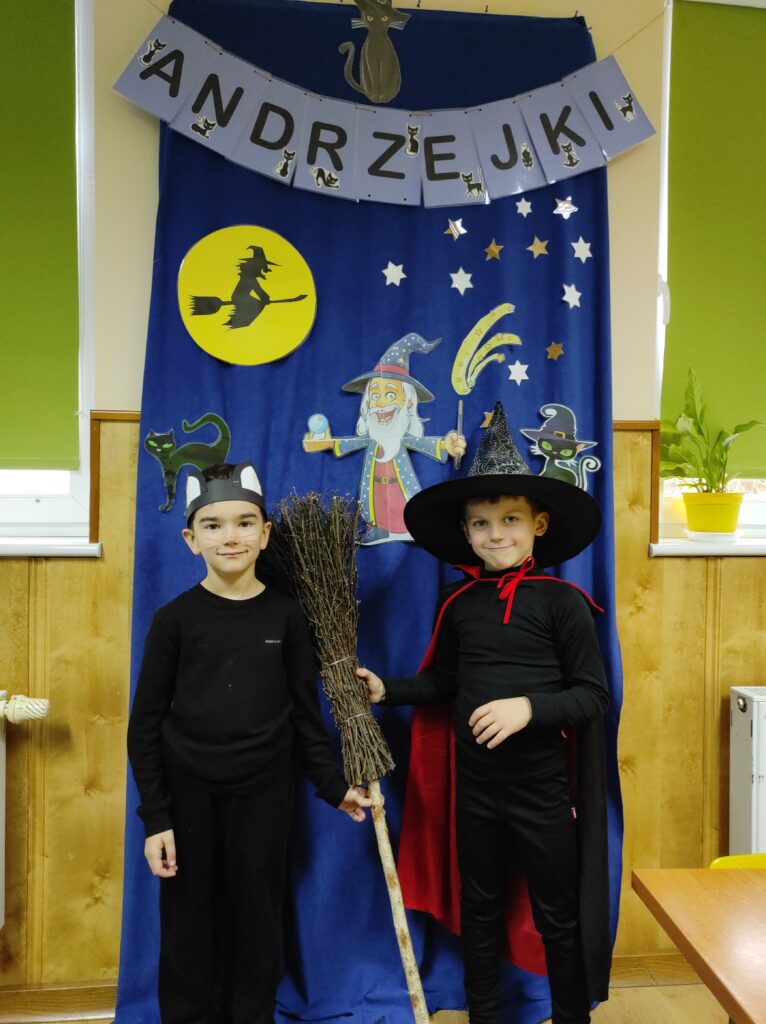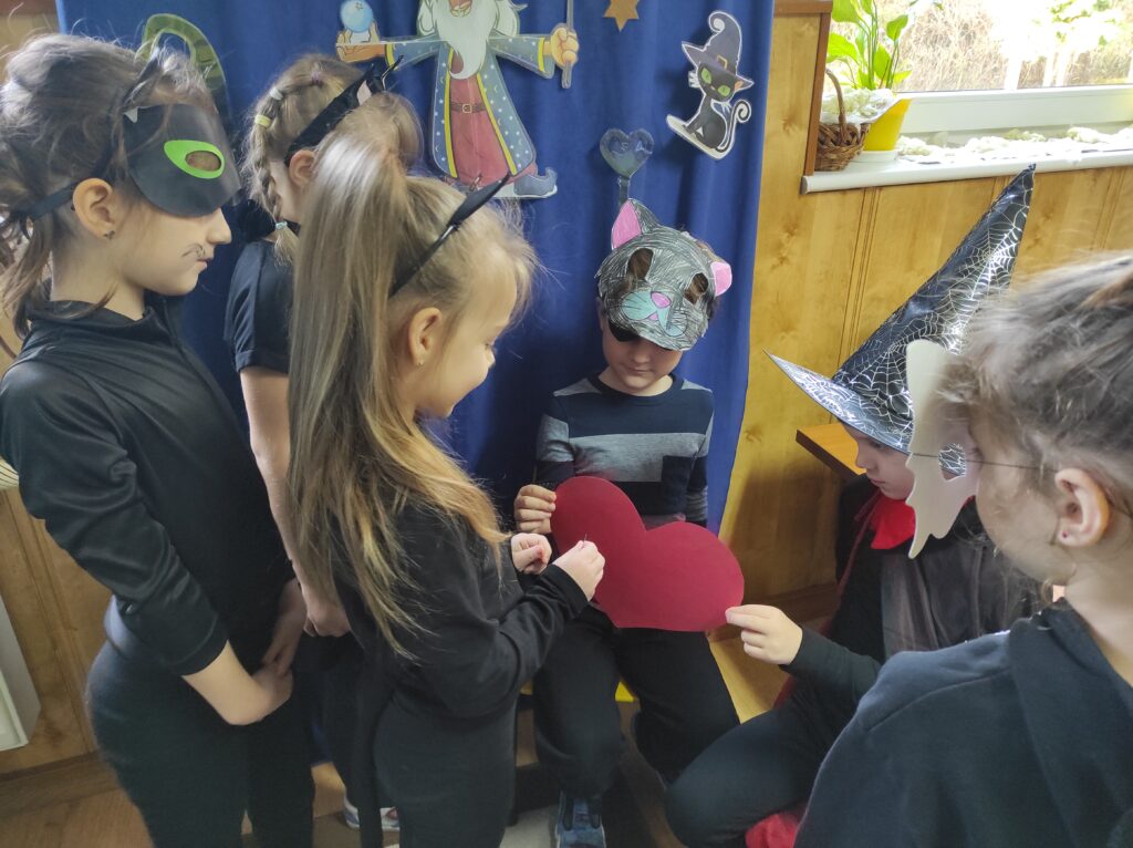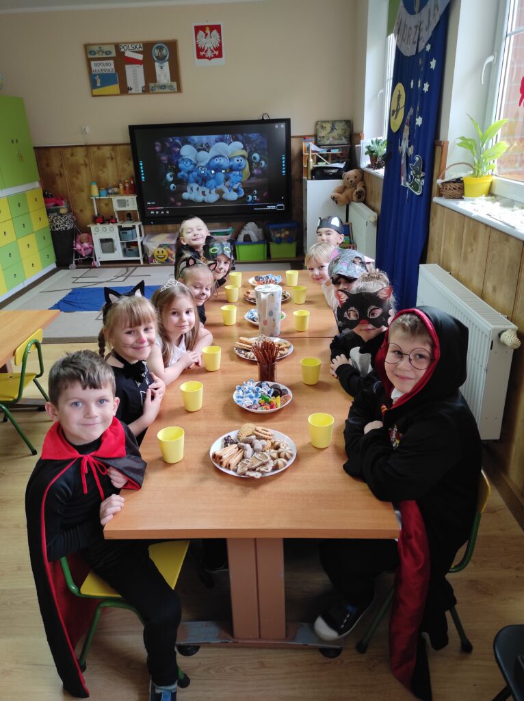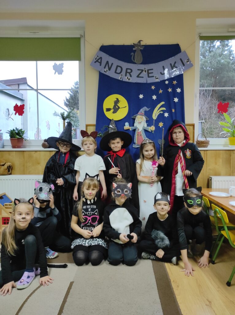 Przychodząc tego dnia do przedszkola każdy z nas ubrany był w piękny kostium. Wśród nas były czarne koty, czarownice, czarodzieje i wróżki. Zapanowała magiczna atmosfera. Ten dzień był dniem radosnych zabaw i wróżb, w których dzieci mogły poznać swoją bliższą i dalszą przyszłość. Było lanie wosku, losowanie kolorów, przekłuwanie serduszek z imionami, wróżenie z użyciem wirującej butelki tego, kim będę w przyszłości oraz co nas czeka. Potem była wspólna przedszkolna dyskoteka. Na zakończenie Żabki zasiadły do poczęstunku przygotowanego przez rodziców.