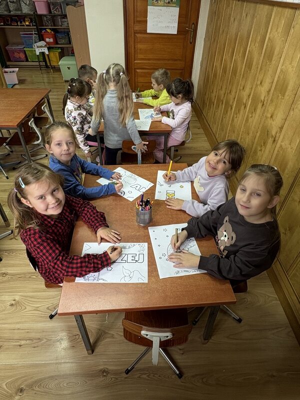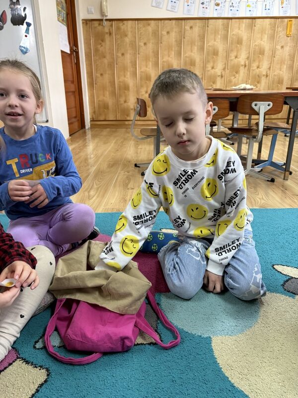 Dzieci z radością uczestniczyły w tradycyjnych wróżbach i zabawach andrzejkowych. Było dużo śmiechu, tańców i wspólnej zabawy, a magiczna atmosfera sprawiła, że dzień stał się wyjątkowy i pełen niespodzianek.