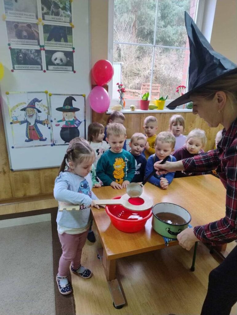 Tradycyjnie, jak co roku, nasze przedszkole zamieniło się dziś w miejsce pełne magii i dobrej zabawy! 🔮⭐ Atmosfera była wyjątkowa, a na dzieci czekało mnóstwo wesołych wróżb – lanie wosku, losowanie przyszłych zawodów oraz magiczne symbole, które wywołały wiele uśmiechów i radości.