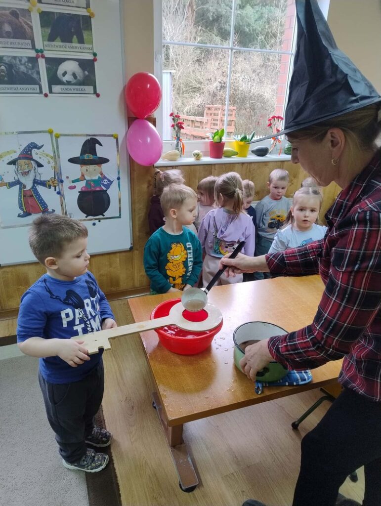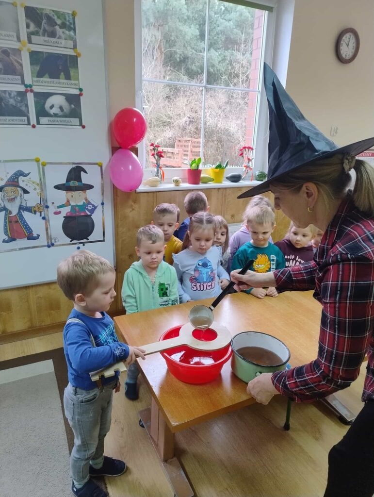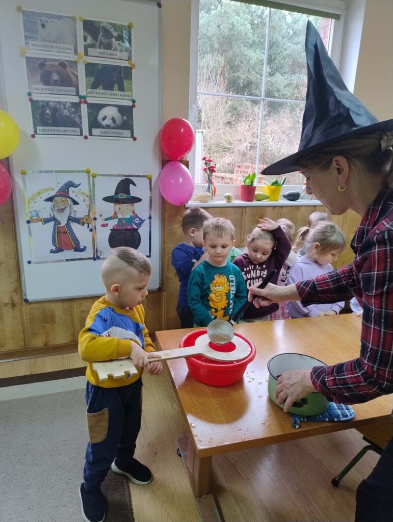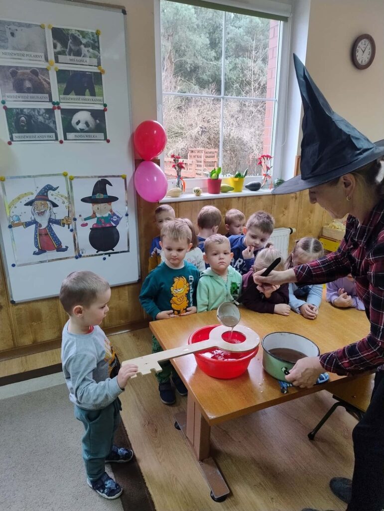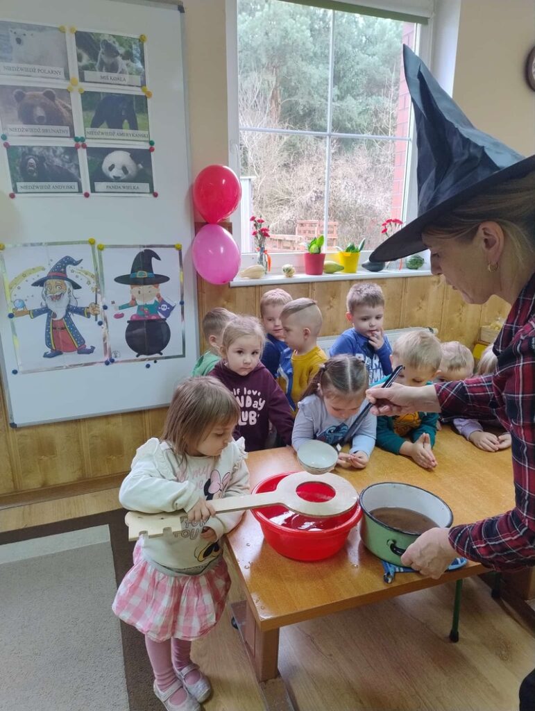 Dzieci z wielkim zaangażowaniem brały udział w tradycyjnych wróżbach andrzejkowych. Było losowanie przepowiedni, zabawy z butami oraz wiele śmiechu i pozytywnych emocji. Największą atrakcją okazało się oczywiście lanie wosku przez klucz 🕯️🔑 – powstałe kształty pobudzały wyobraźnię i były inspiracją do ciekawych opowieści.