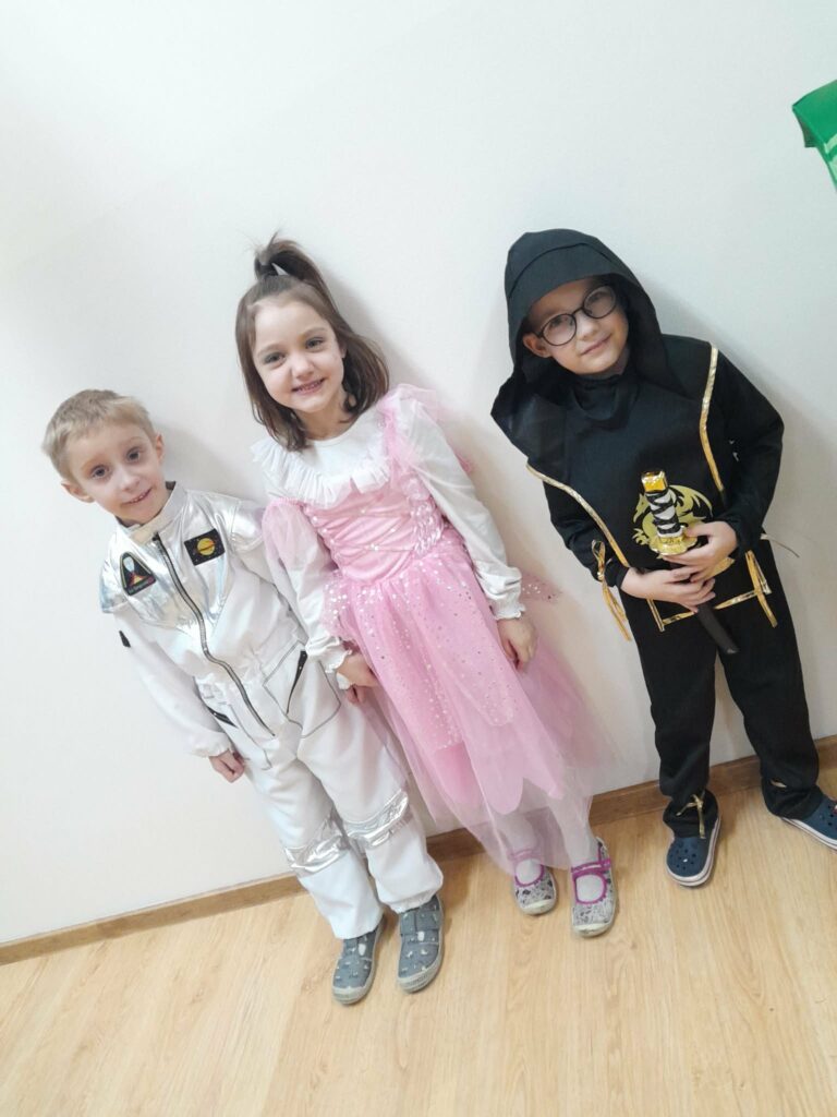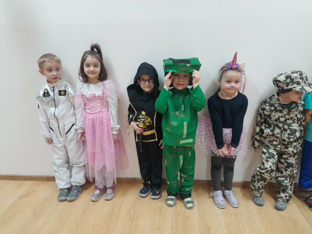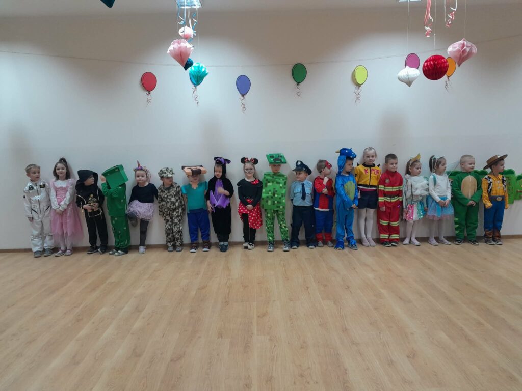 Podczas balu przedszkolaki brały udział w licznych zabawach i konkursach tanecznych. Były wspólne tańce, zabawy z balonami oraz parada kostiumów. Na twarzach dzieci przez cały czas gościł uśmiech, a dobra zabawa nie miała końca.