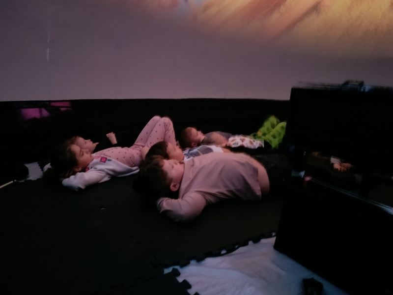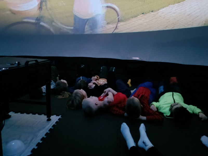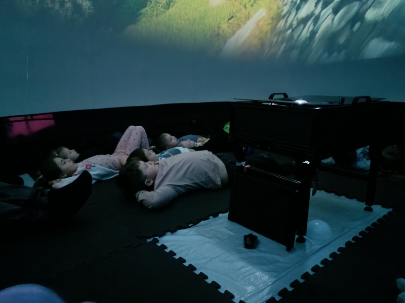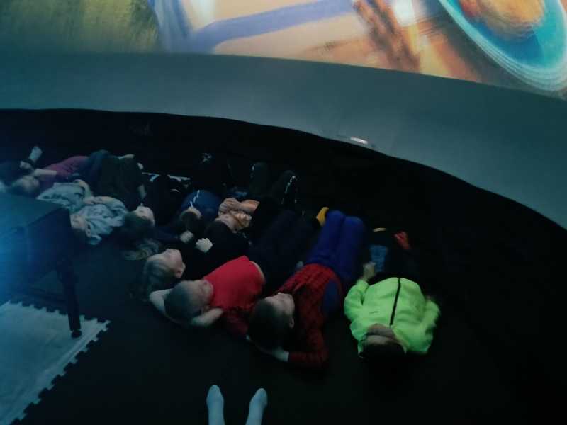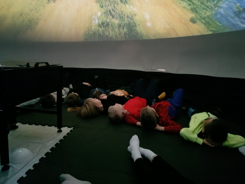 Już na samym początku seansu kopuła wypełniła się dziecięcym śmiechem i ekscytacją. Kino sferyczne umożliwiło nam pełne zanurzenie się w trójwymiarowym obrazie, co sprawiło, że każda scena była jeszcze bardziej intrygująca i realistyczna. Dzieci z zapartym tchem obserwowały zmieniające się krajobrazy – od wiosennych łąk pełnych kwiatów, przez letnie plaże, aż po kolorowe liście jesieni i zimowe krajobrazy pokryte śniegiem.