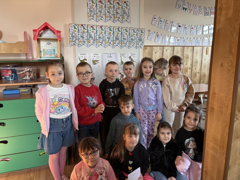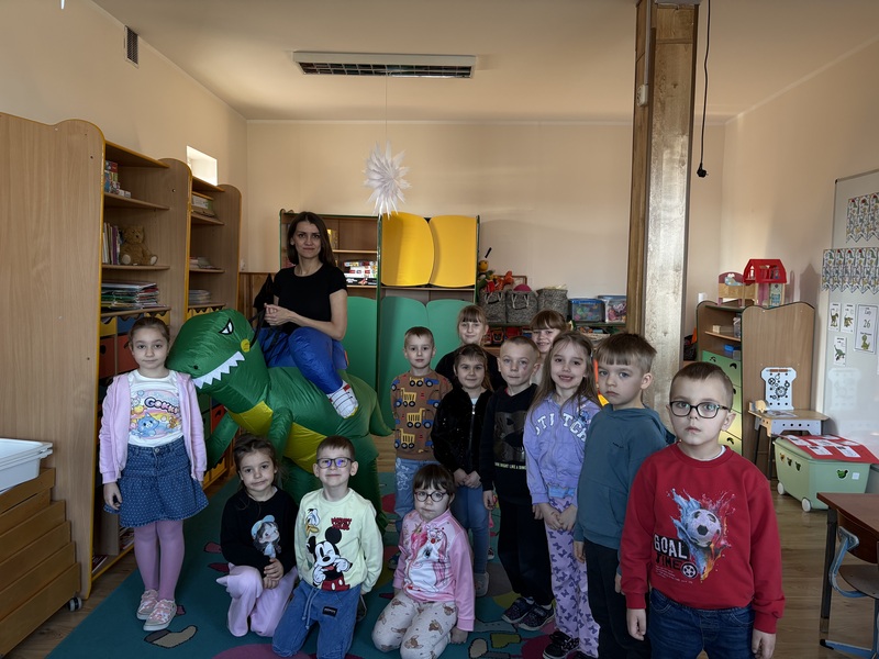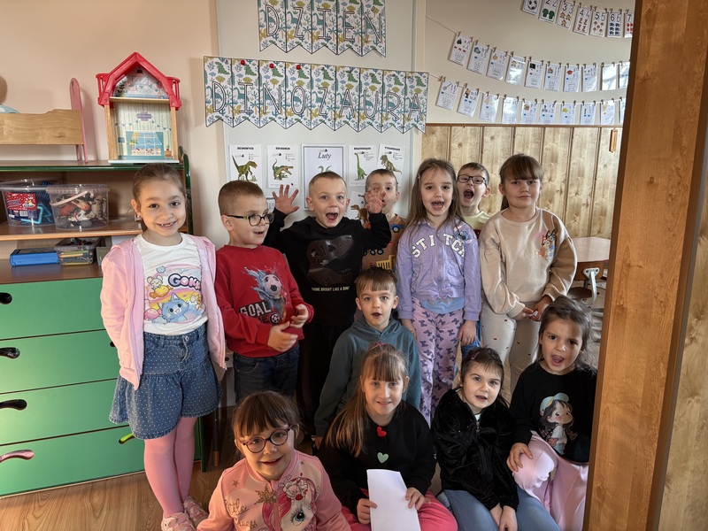 Dzisiejsze świętowanie przeniosło nas prosto do prehistorycznego świata! Odwiedził nas ogromny, dmuchany „dinozaur”, który wzbudził w dzieciach zachwyt i mnóstwo radości. Przedszkolaki tworzyły własne dinozaurowe prace plastyczne, rozwijając wyobraźnię i kreatywność. Nie zabrakło też naukowej ciekawości — podczas specjalnego eksperymentu dzieci mogły zobaczyć hologram dinozaura, co wywołało prawdziwy efekt „wow”.
