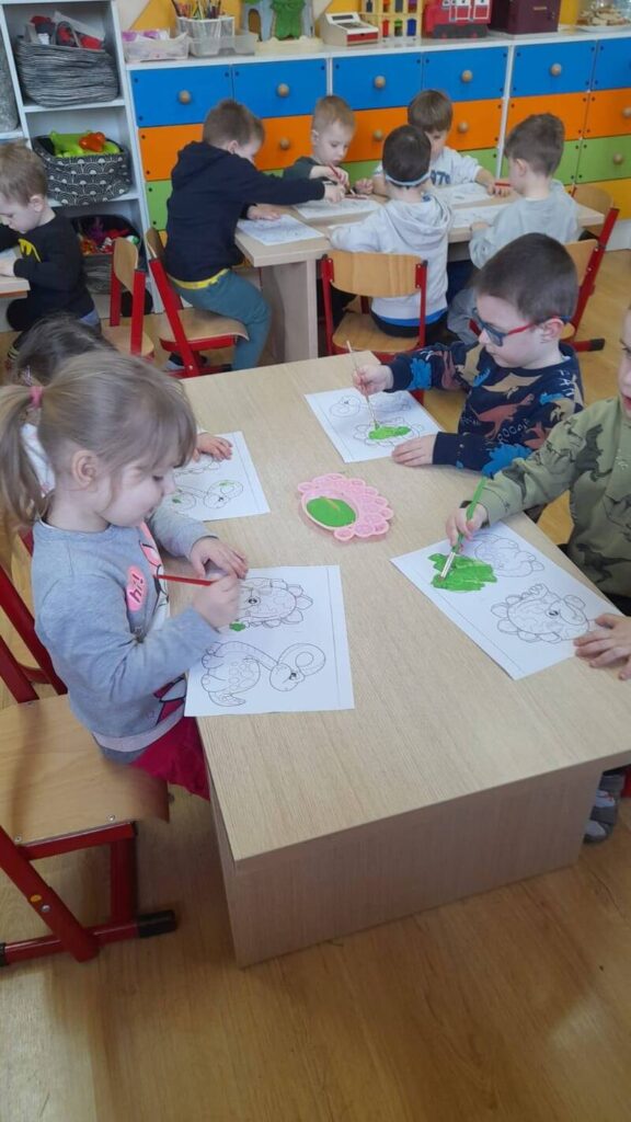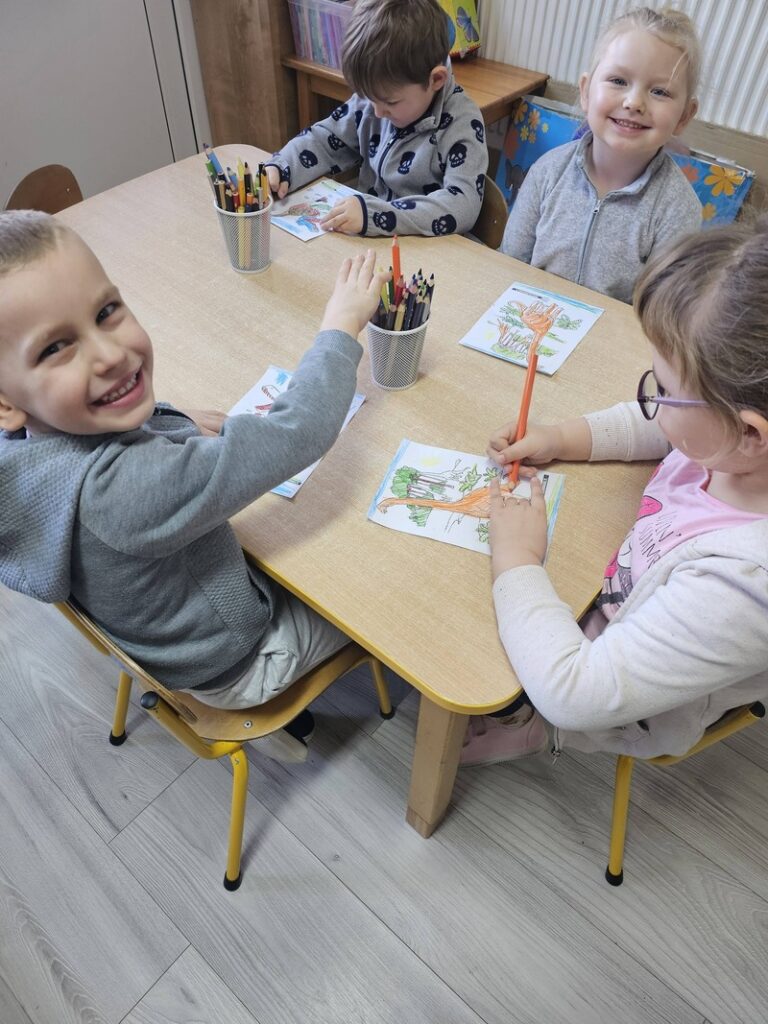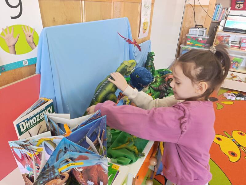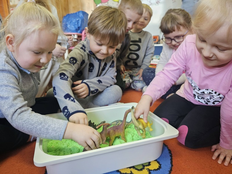 To był niezwykły i pełen wrażeń dzień. Z okazji Dnia Dinozaura dzieci przeniosły się w prehistoryczny świat – poznawały różne gatunki dinozaurów, oglądały ilustracje, brały udział w zabawach ruchowych oraz wykonywały tematyczne prace plastyczne.