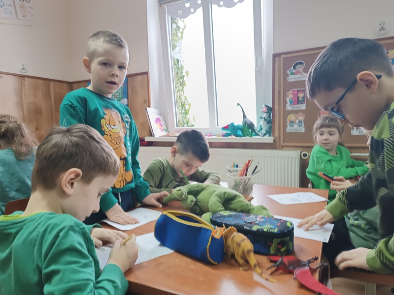 26. lutego grupa Tygryski obchodziła fascynujący Dzień Dinozaura. Dzieci miały okazję poznać wiele ciekawostek o tych prehistorycznych gigantach, m.in. czytając wiele książek. To była niezwykła przygoda edukacyjna, która rozwijała ich wiedzę i wyobraźnię. Tygryski tworzyły również wspaniałe prace plastyczne, które przybliżały im życie dinozaurów. Oglądały także kolorowe ilustracje, które przenosiły je w świat tych majestatycznych stworzeń. Dodatkowo, dzieci łączyły literki, co pozwoliło im ćwiczyć swoje umiejętności językowe i jeszcze lepiej zrozumieć fascynujący świat prehistorii. Obchody Dnia Dinozaura były niezapomnianym doświadczeniem, które pozwoliło dzieciom nie tylko świetnie się bawić, ale także zdobyć cenną wiedzę i rozwijać swoje zainteresowania.