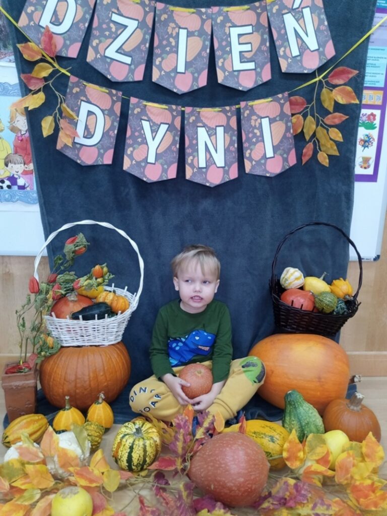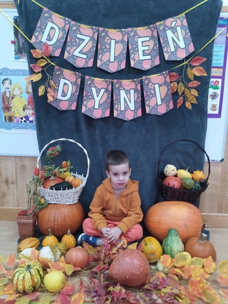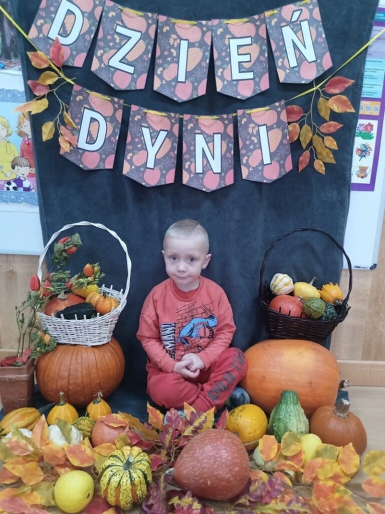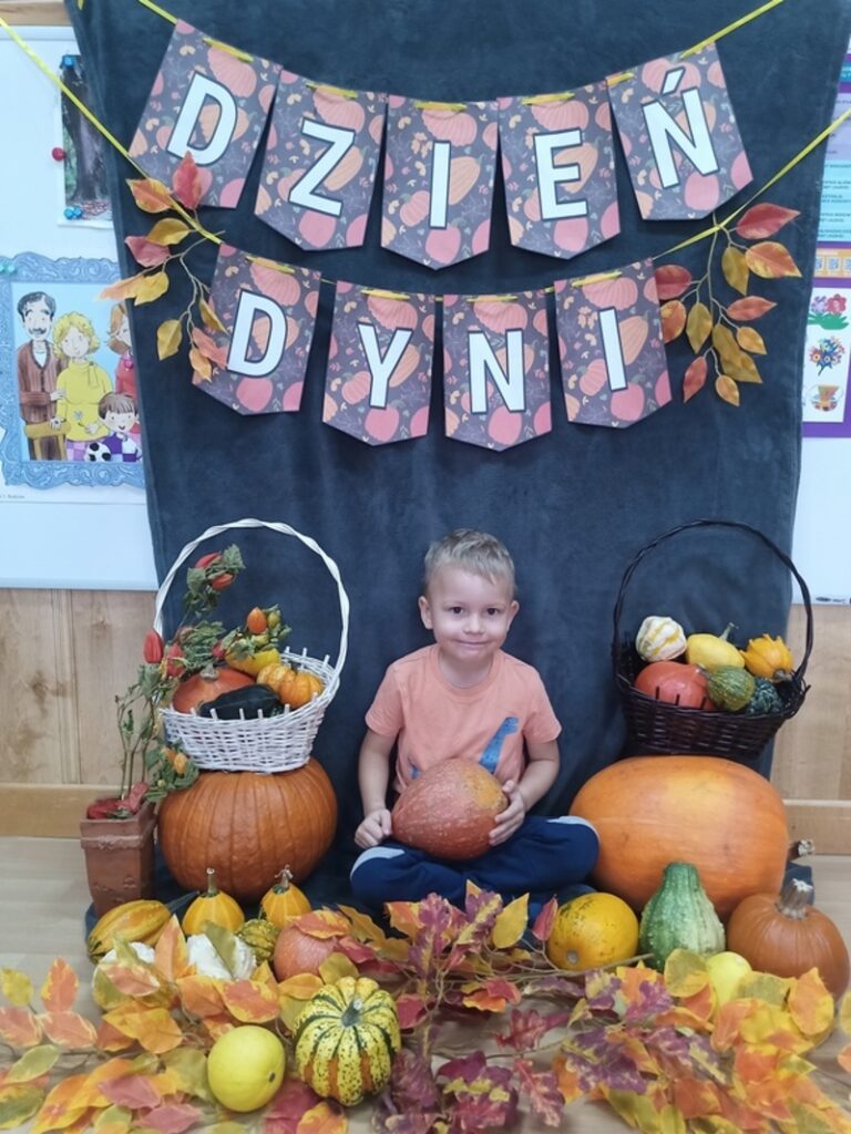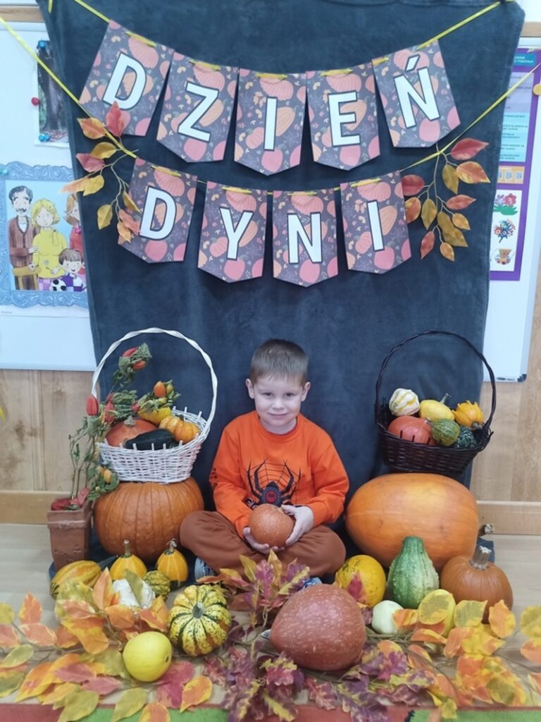 Dzisiaj świętowaliśmy Dzień Dyni! Przynieśliśmy do przedszkola różnorodne dynie i wszyscy byliśmy ubrani na pomarańczowo. Były tańce, zabawy i tworzenie wesołych rymowanek. Dynia stała się także inspiracją do prac plastycznych. Wielką atrakcją okazała się fotościanka, gdzie uwieczniliśmy ten wyjątkowy dzień.
