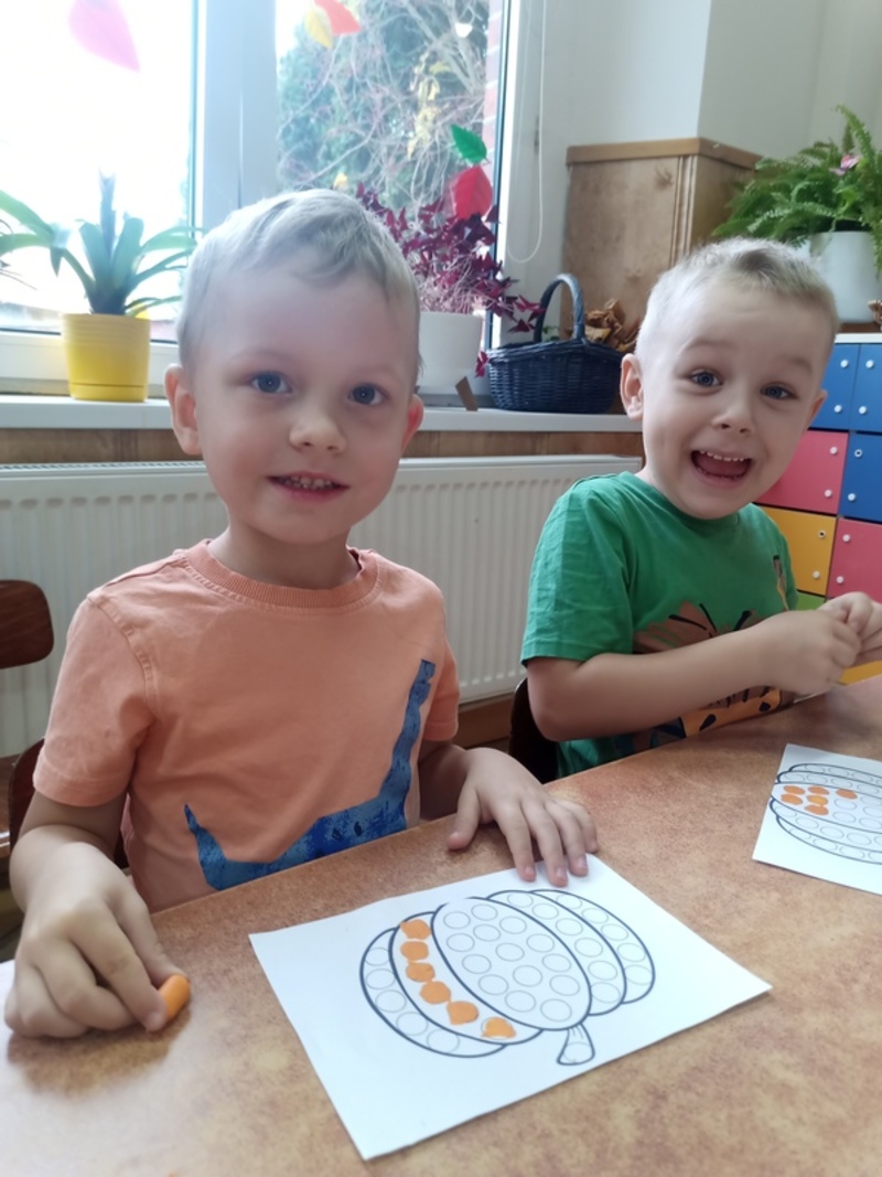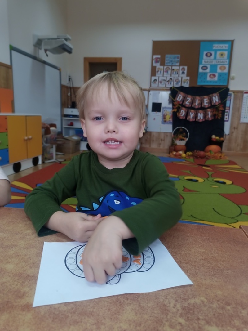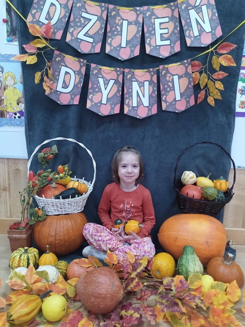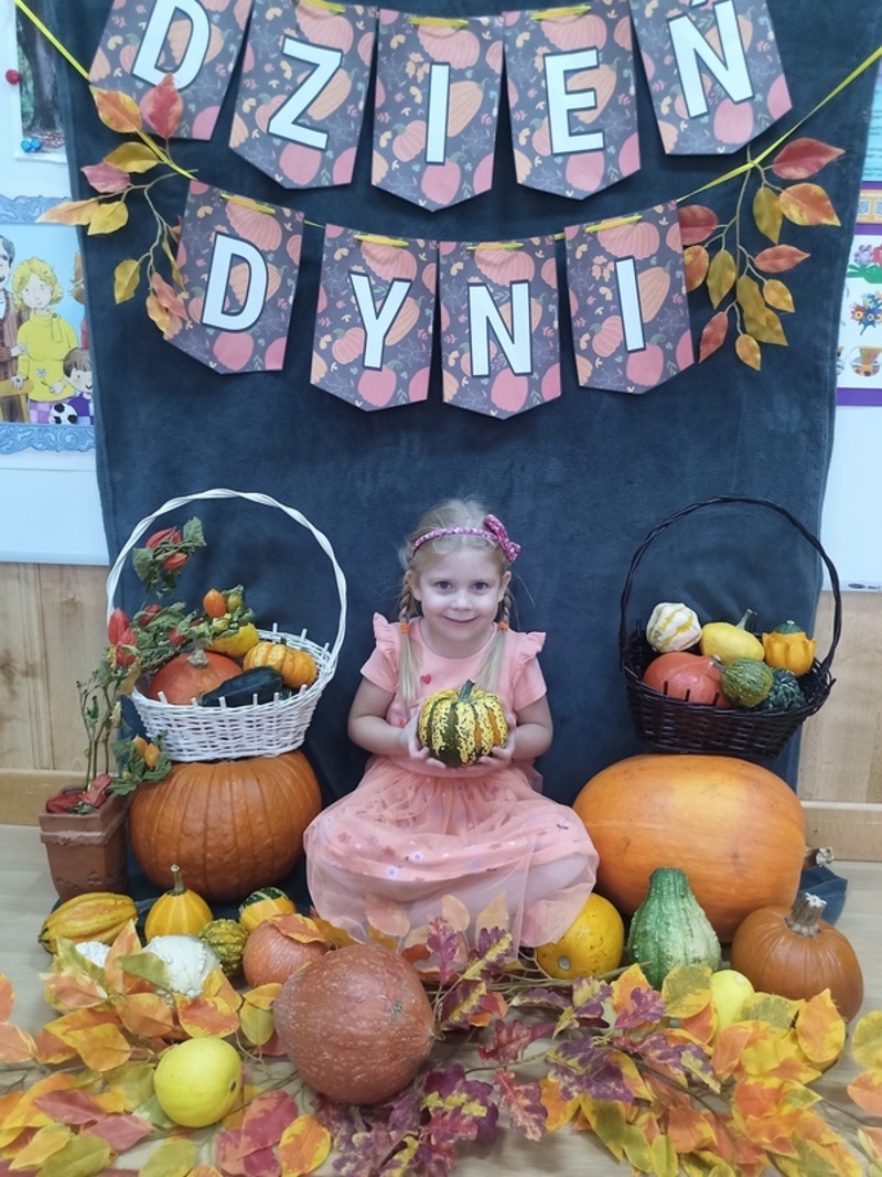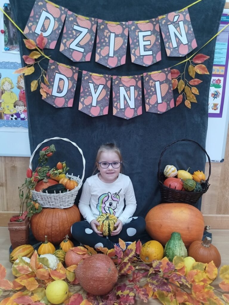 Dzisiaj świętowaliśmy Dzień Dyni! Przynieśliśmy do przedszkola różnorodne dynie i wszyscy byliśmy ubrani na pomarańczowo. Były tańce, zabawy i tworzenie wesołych rymowanek. Dynia stała się także inspiracją do prac plastycznych. Wielką atrakcją okazała się fotościanka, gdzie uwieczniliśmy ten wyjątkowy dzień.