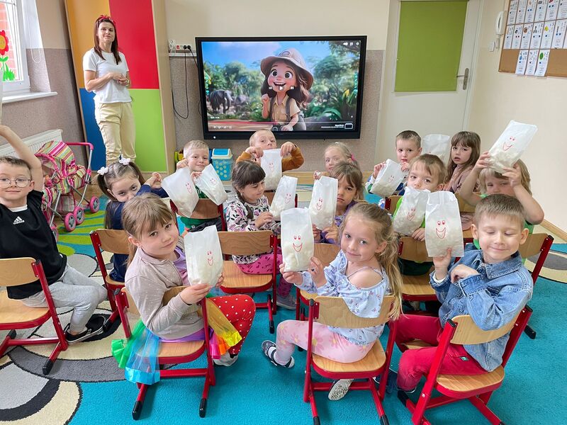 Dzieci uczestniczyły w seansie filmowym – był popcorn i bajka.