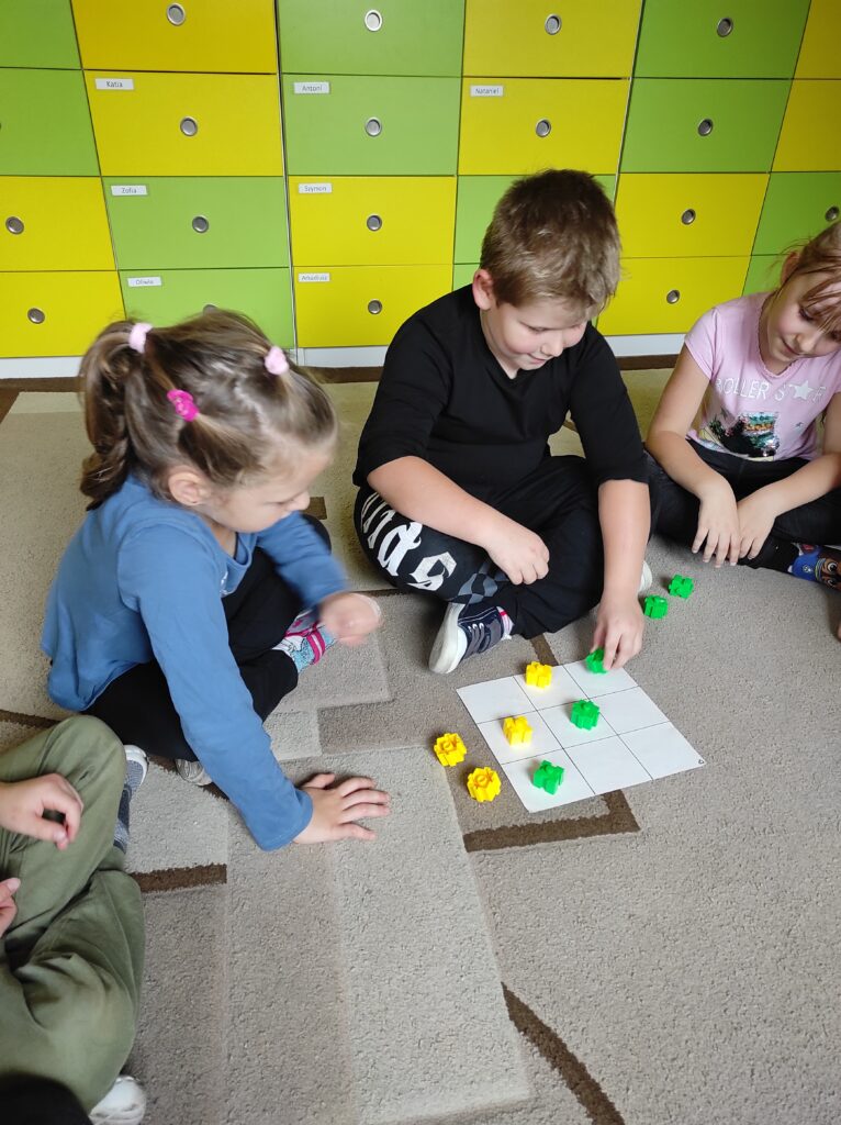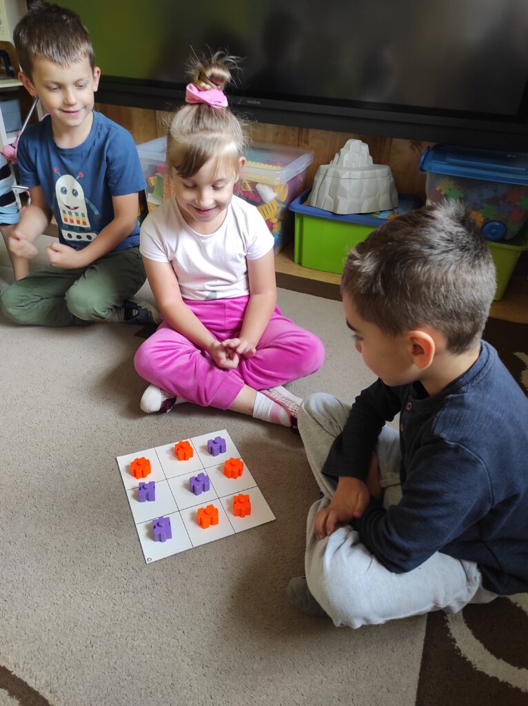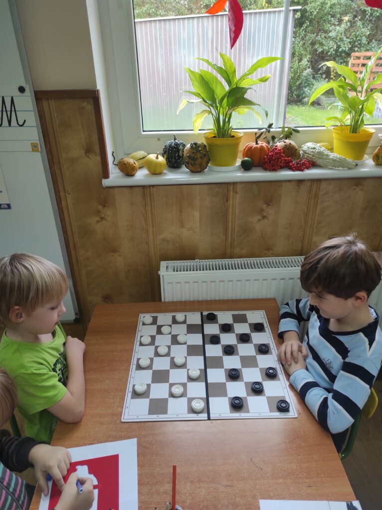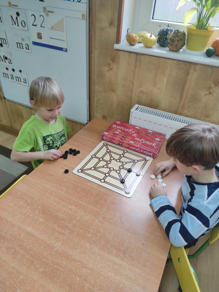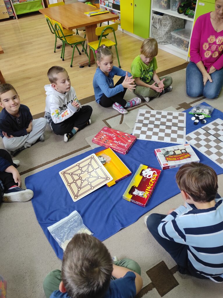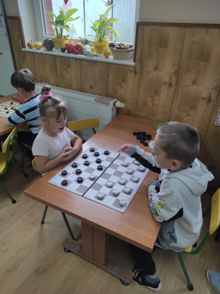Gry planszowe są doskonałym sposobem spędzania wolnego czasu, zapewniają dobrą zabawę, rozwijają wyobraźnię oraz uczą przewidywania, podejmowania decyzji i ponoszenia odpowiedzialności. Z tych ważnych powodów – dnia 10 października w naszej grupie świętowaliśmy Dzień Gier Planszowych. Była to wspaniała okazja dla Żabek, by poznać reguły gier (Warcaby, Kółko i krzyżyk, Młynek), nawiązywać dobre relacje,a przede wszystkim – grać w gry planszowe.