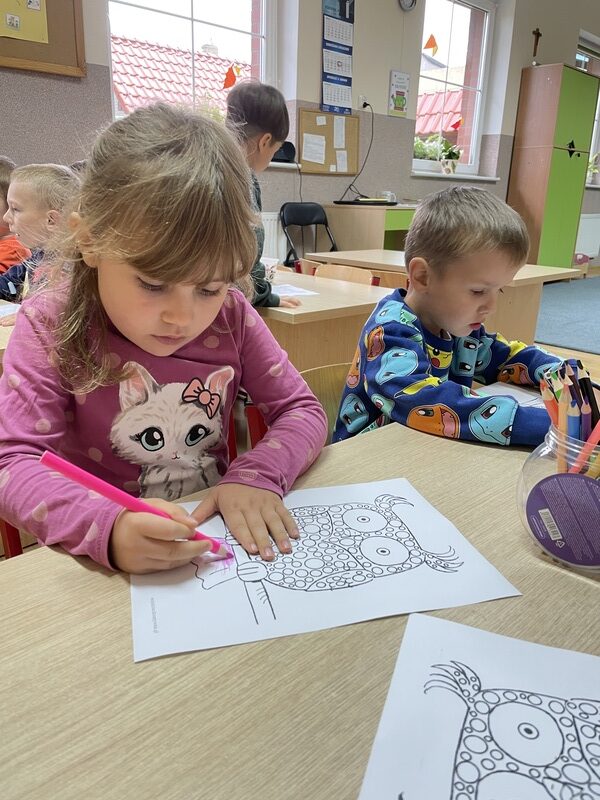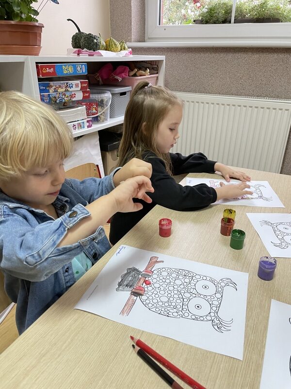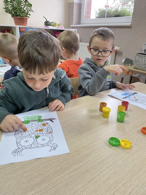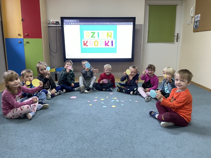 Następnie przedszkolaki wzięły udział w różnych zabawach i aktywnościach związanych z motywem kropki.