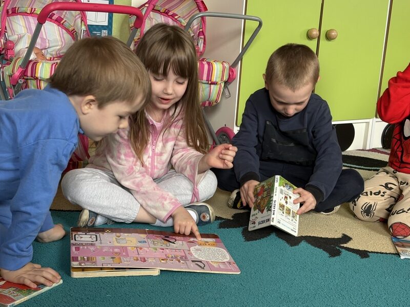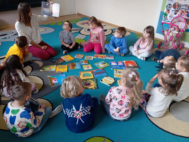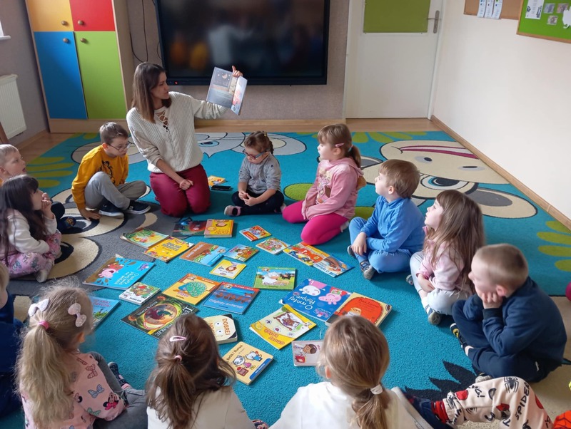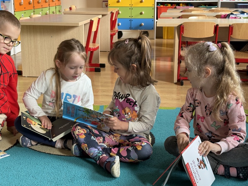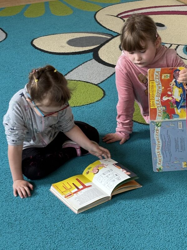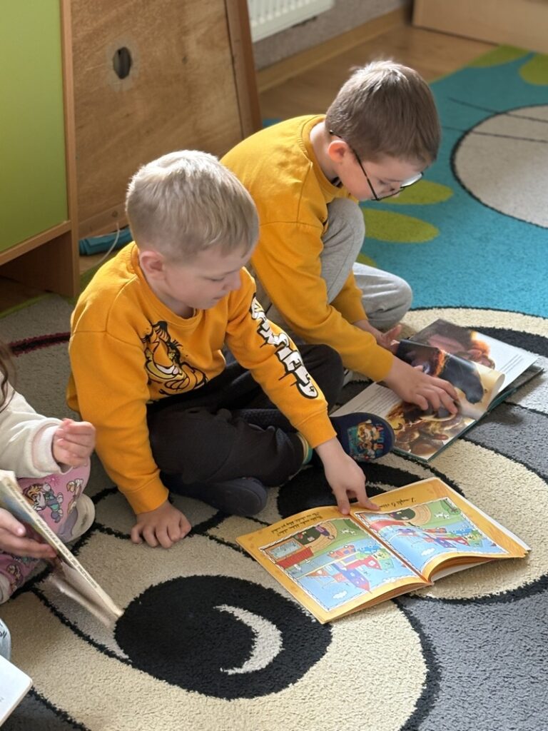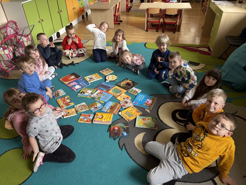 Dzień Książki w naszej grupie był pełen magicznych opowieści i wspólnego odkrywania świata literatury! Dzieci miały okazję zanurzyć się w barwnych historiach, wysłuchać ulubionych bajek i podzielić się swoimi książkowymi skarbami. Nie zabrakło też zabawy – tworzyliśmy własne mini-opowieści i okładkę ulubionej książki.