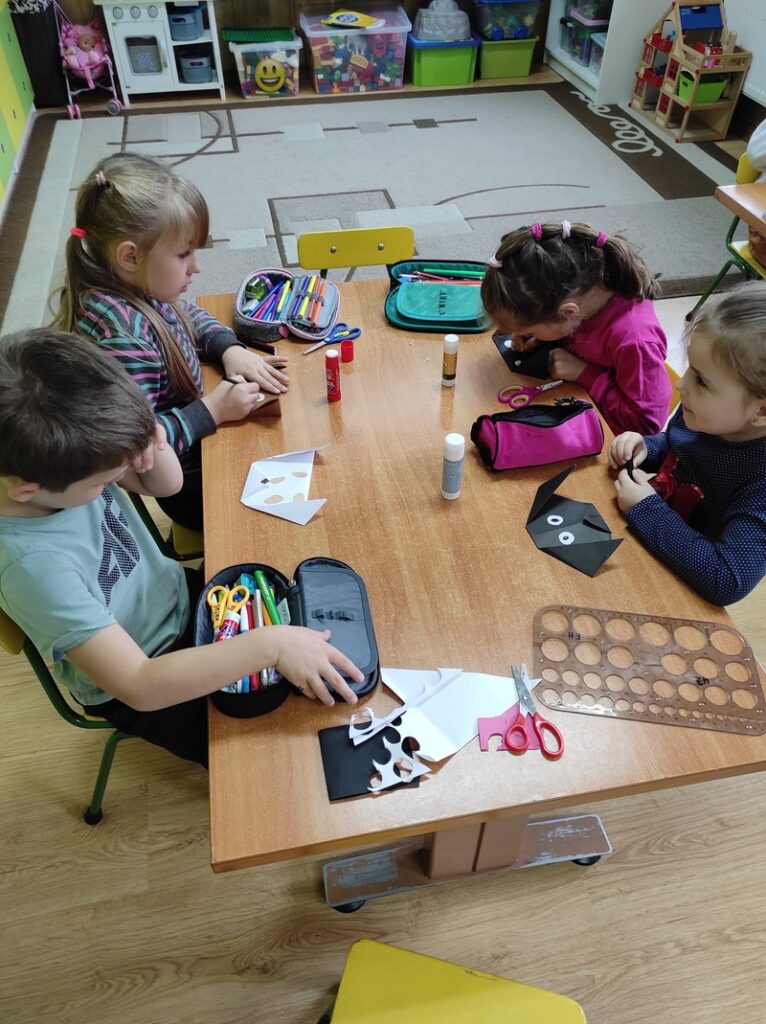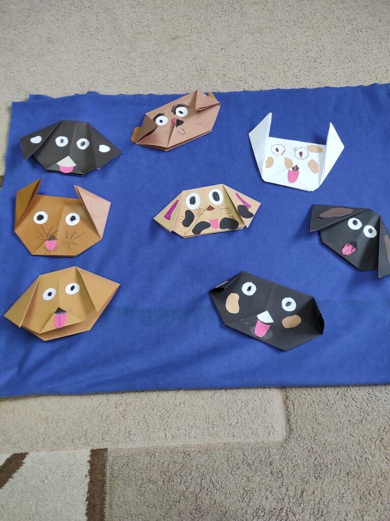 W naszej grupie obchodziliśmy wspólnie Dzień Origami i Dzień Kundelka. Z tej okazji Żabki samodzielnie wykonały pieska metodą origami. Bardzo dobrze sobie poradziły i były zadowolone z efektów swojej pracy.