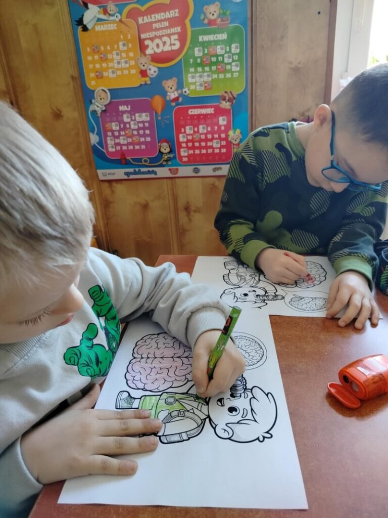 W naszym przedszkolu obchodziliśmy Europejski Dzień Mózgu! Dzieci miały okazję dowiedzieć się, jak ważny jest nasz mózg i do czego go potrzebujemy. 👀 Oglądaliśmy ciekawe filmy edukacyjne, 💡 Rozmawialiśmy o tym, jak działa mózg i jak pomaga nam w codziennym życiu, 🎨 Wykonywaliśmy kreatywne zadania rozwijające naszą pamięć i koncentrację. Dzięki wspólnej zabawie i nauce przedszkolaki dowiedziały się, jak dbać o swój mózg, by był zdrowy i sprawny. To był dzień pełen wiedzy i radości!