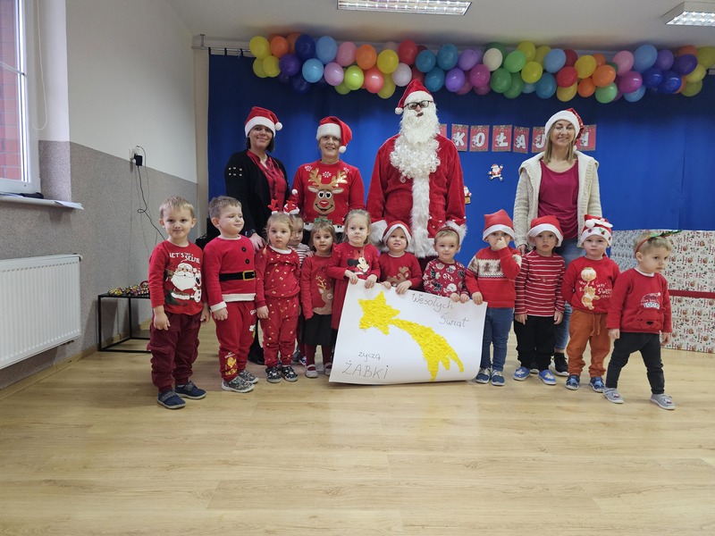 Największą niespodzianką było spotkanie ze Świętym Mikołajem. Żabki z zaciekawieniem i uśmiechem przywitały wyjątkowego Gościa, a na zakończenie każde dziecko otrzymało od Mikołaja prezencik.