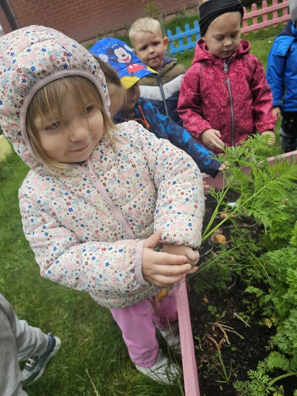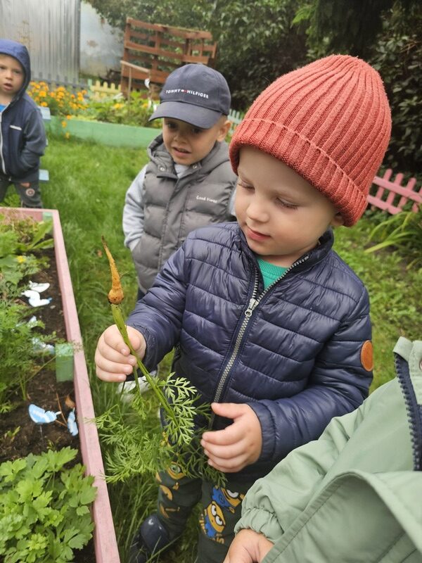 W grupie „Żabki” odbył się jesienny tydzień, podczas którego dzieci poznawały uroki tej pięknej pory roku. Przedszkolaki oglądały i rozpoznawały dary jesieni, takie jak owoce, warzywa, liście i kasztany. Wykonywały również jesienne prace plastyczne, rozwijając swoją kreatywność i sprawność manualną. Odwiedziliśmy także przedszkolny ogródek, gdzie dzieci z zaangażowaniem pomagały w jesiennych porządkach. To był kolorowy, pełen radości i nauki tydzień w „Żabkach”.