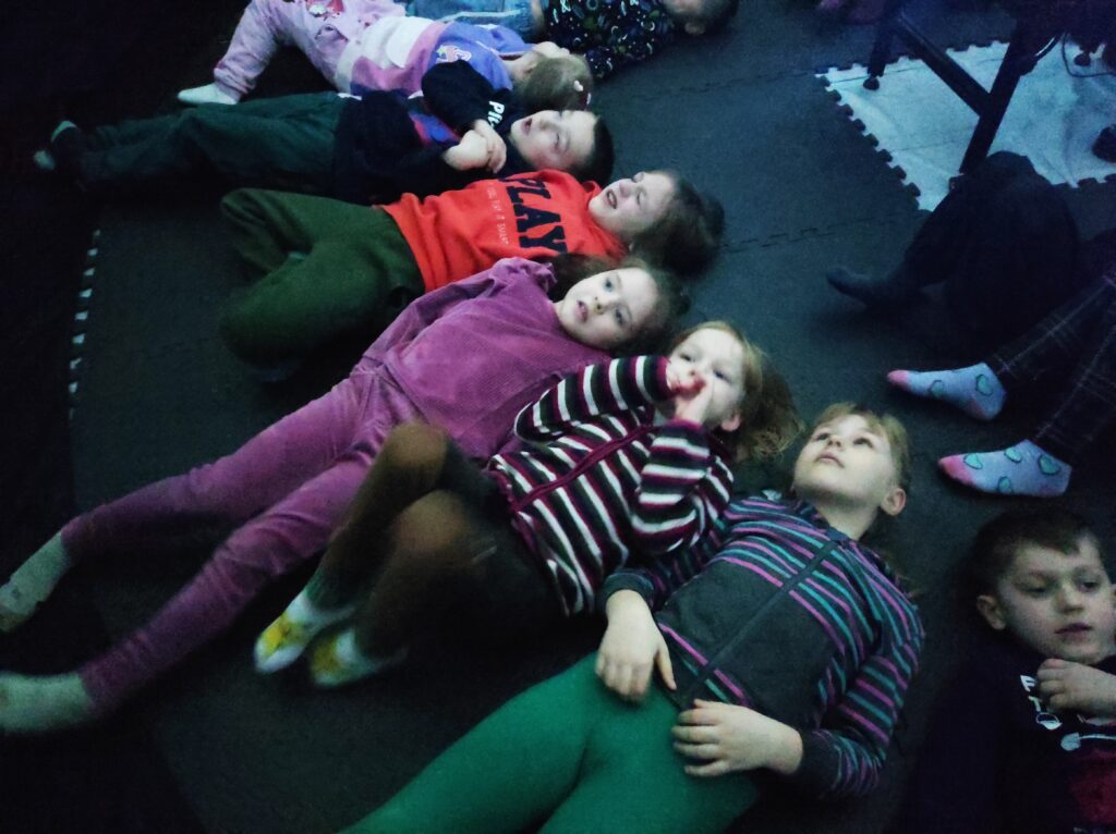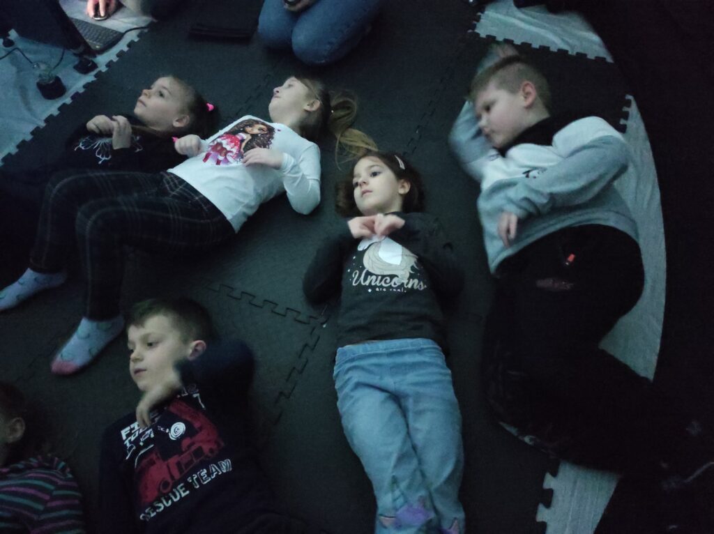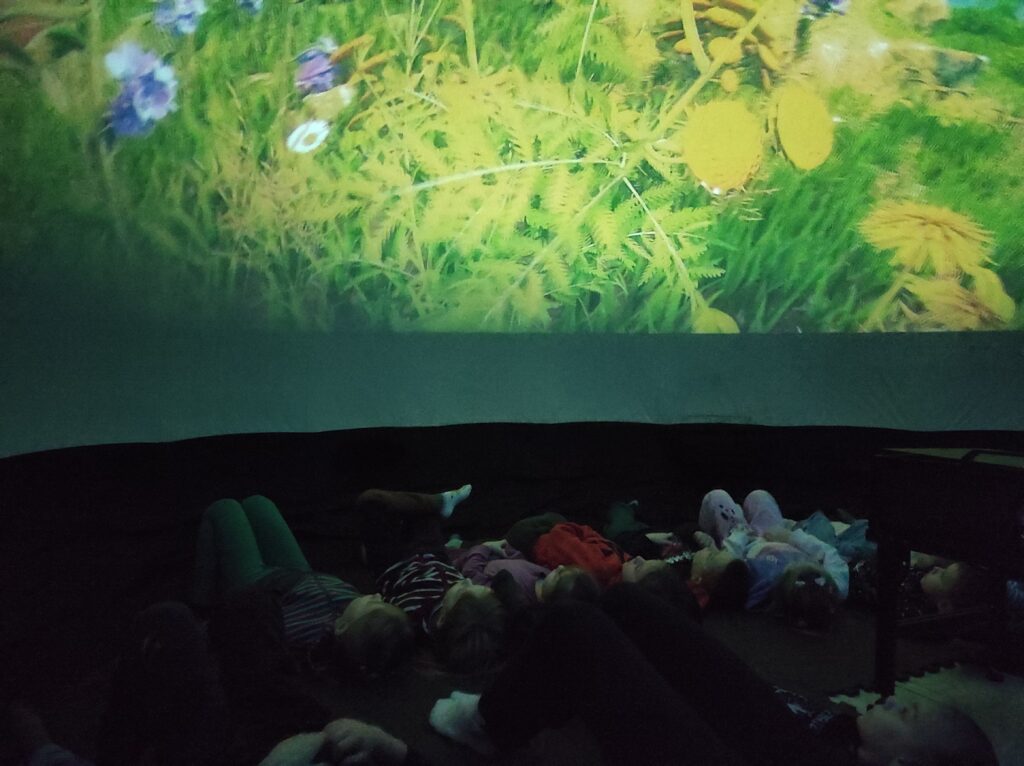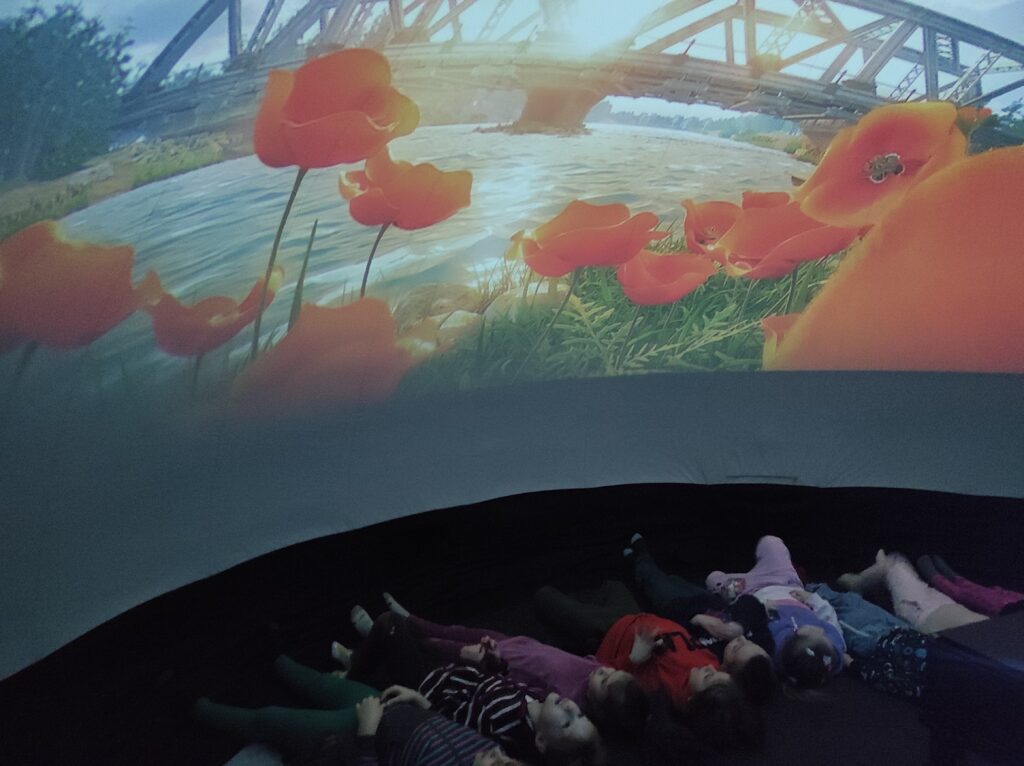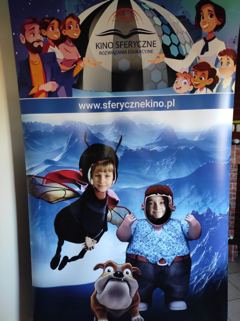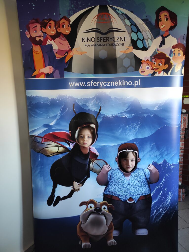 Do naszego przedszkola przyjechało kino sferyczne. Dzięki tej nietradycyjnej formie pokazu przedszkolaki nie ruszając się z miejsca, przeniosły się do innej przestrzeni. Dzieci obejrzały film edukacyjny o Ziemi – naszej planecie i zmieniających się porach roku. Poprzez trójwymiarową przestrzeń, atrakcyjne widoki i niesamowite efekty dźwiękowe dzieci chętniej i szybciej zrozumiały i zapamiętały przekazywaną im wiedzę.