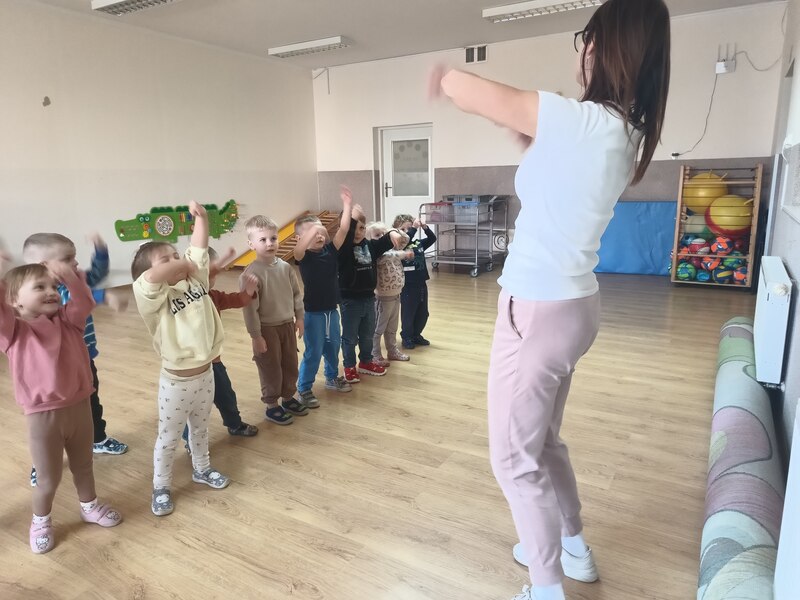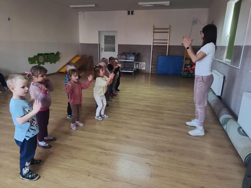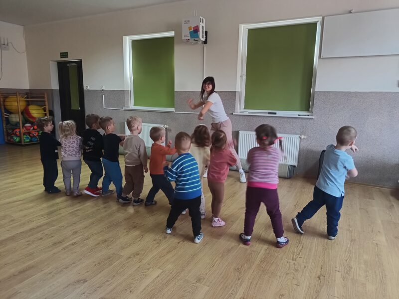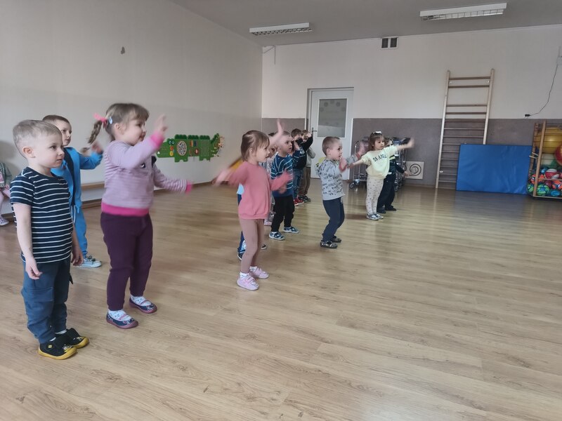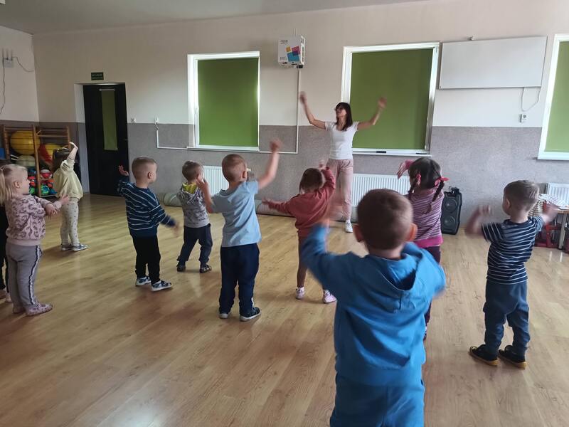 Zajęcia zumby w naszym przedszkolu to pełne energii i radości spotkania taneczno-ruchowe, które łączą rytmiczną muzykę z prostymi układami tanecznymi. Dzieci naśladują kroki instruktora, rozwijając koordynację ruchową, poczucie rytmu oraz sprawność fizyczną.