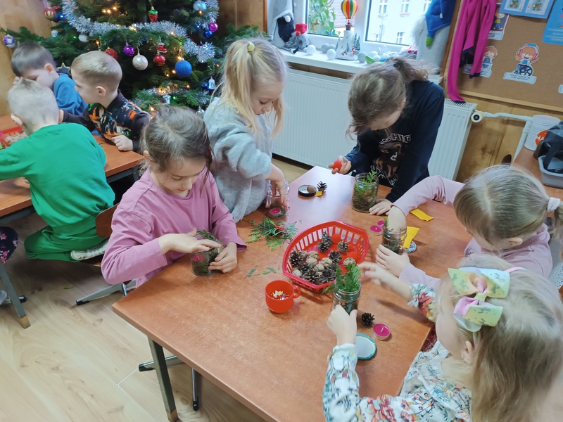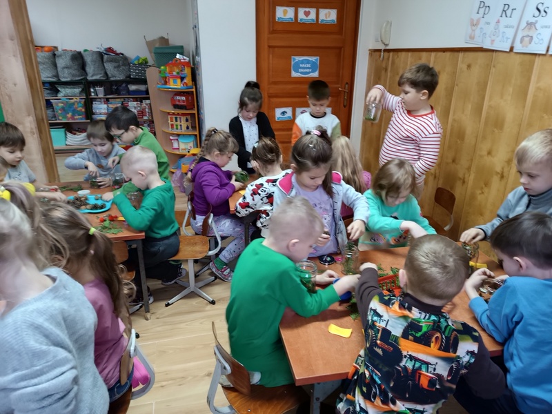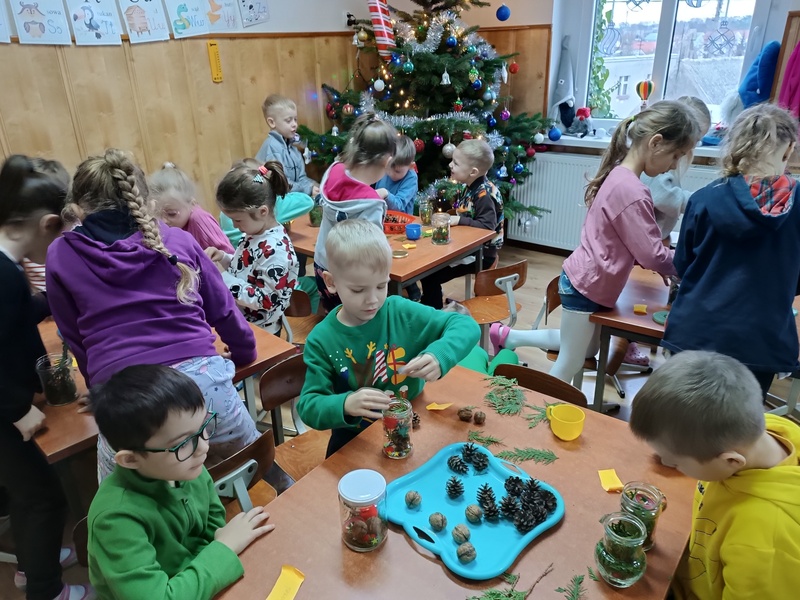 W grupie Tygryski odbyły się niezwykłe warsztaty, podczas których dzieci miały okazję stworzyć własne, wyjątkowe stroiki świąteczne. Przedszkolaki pracowały samodzielnie, korzystając z różnych materiałów, takich jak gałązki, szyszki, kolorowe wstążki i ozdoby.