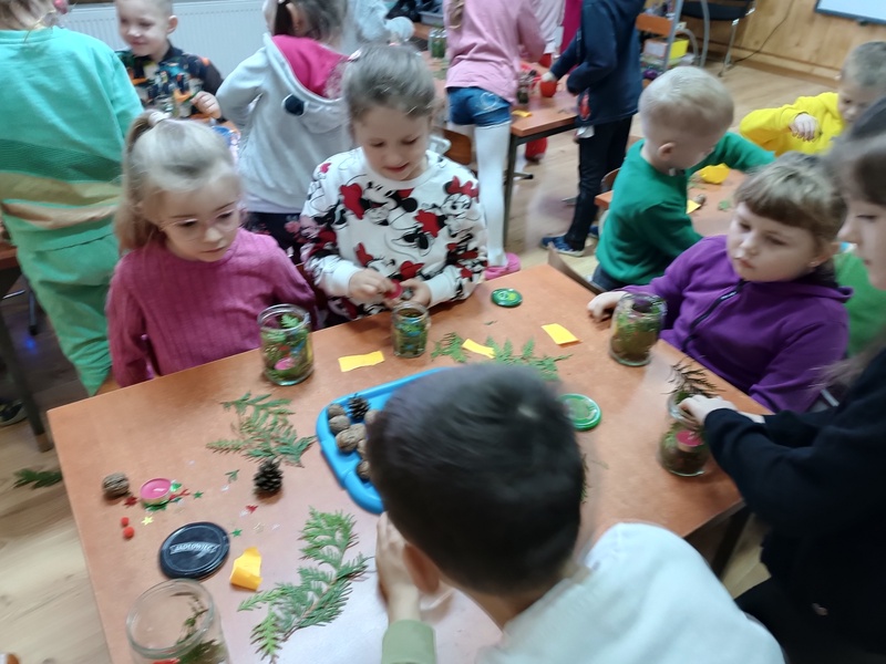 Mali artyści wykazali się niesamowitą kreatywnością, łącząc tradycję z własnymi pomysłami. Każdy mógł stworzyć unikatowy stroik, który będzie ozdabiał dom w czasie świąt. Atmosfera była pełna radości, a śmiech wypełniał całe przedszkole.