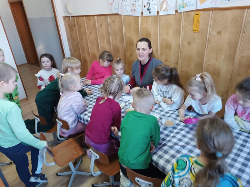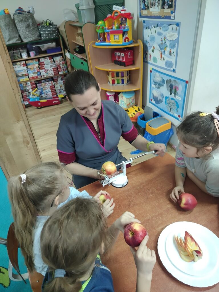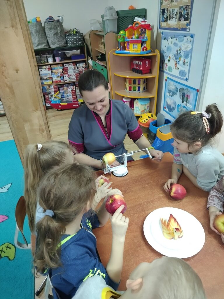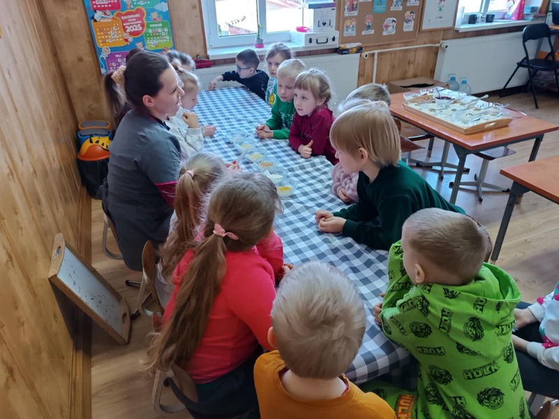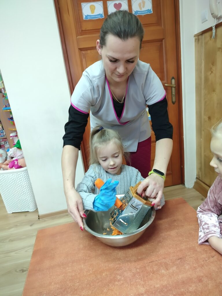 W naszym przedszkolu, co tydzień bierzemy udział w zajęciach kulinarnych prowadzonych przez naszą kochaną panią Anię z kuchni. Są to wyjątkowe chwile, podczas których mamy okazję poznać różnorodne smaki i aromaty, jednocześnie pobudzając nasze zmysły. Pod czujnym okiem pani Ani, uczymy się, jak zdobić babeczki przy użyciu kolorowych posypek, lukru oraz bajkowych opłatków spożywczych. Każde zajęcia to także nauka bezpiecznego posługiwania się kuchennymi narzędziami – jak tarką czy specjalnym nożem do jabłek. Dzięki temu, zdobywamy nie tylko nowe umiejętności, ale także pewność siebie w kuchni. Zajęcia kulinarne to dla nas nie tylko nauka, ale przede wszystkim radość z wspólnego gotowania i cieszenia się smakołykami, które sami przygotowaliśmy. Każde kolejne zajęcia to nowe, fascynujące doświadczenie, które na długo pozostaje w naszej pamięci. Od dziś już każdy Tygrysek będzie potrafił pomóc swojej mamie w kuchni.
