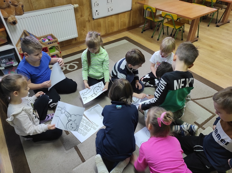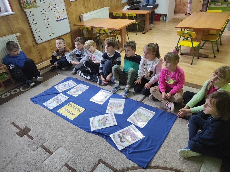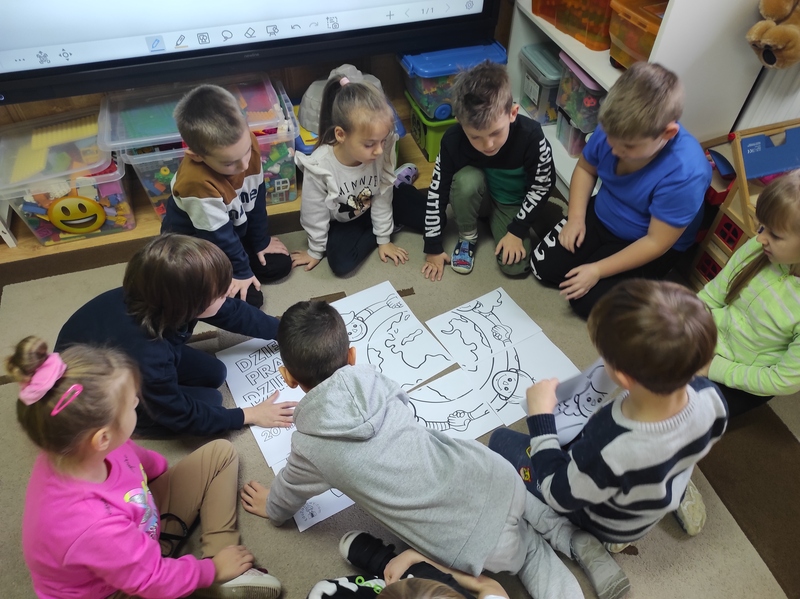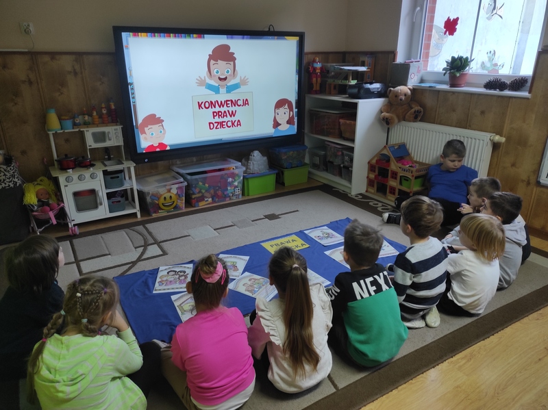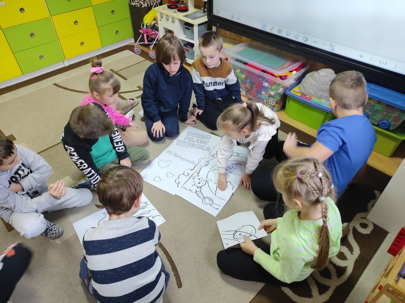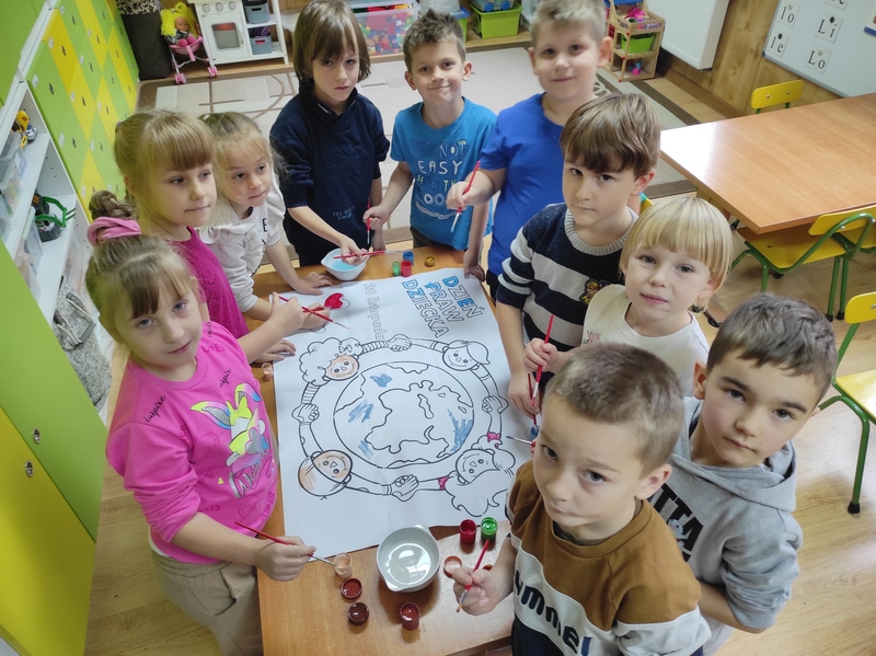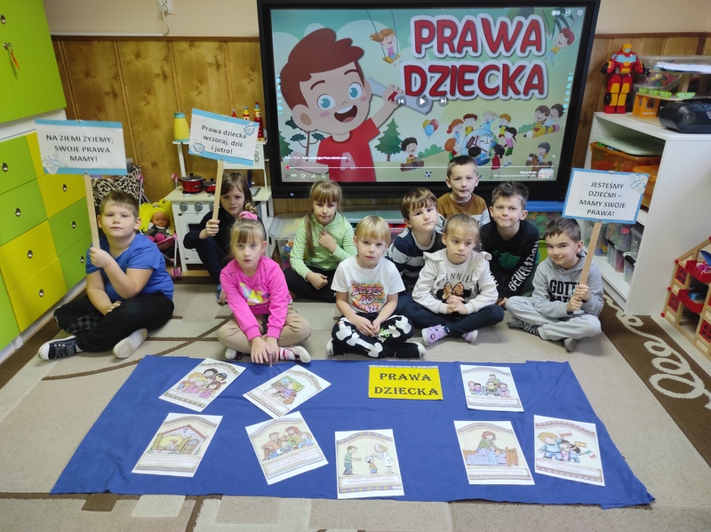 20 listopada obchodziliśmy Międzynarodowy Dzień Praw Dziecka. Przedszkolaki dowiedziały się, jakie mają prawa, ale również, jakie mają obowiązki. Uczestniczyły w zajęciu, obejrzały film edukacyjny pt. „Prawa dziecka”, słuchały piosenki o tej tematyce oraz złożyły plakat z części i go wspólnie pokolorowały.