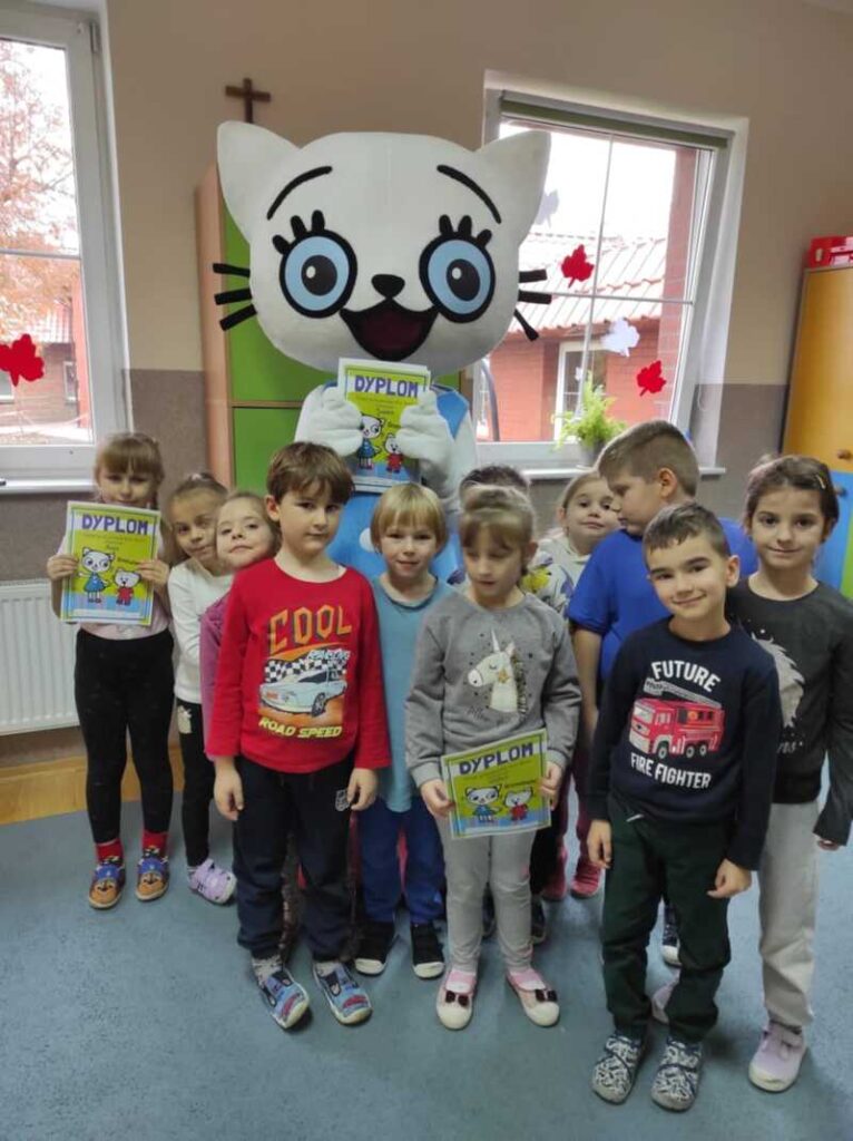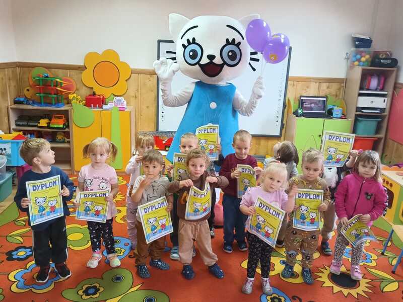 Na zakończenie, każdy przedszkolak otrzymał pamiątkowy dyplom i naklejkę od Kici Koci, co sprawiło im ogromną radość! ![]()