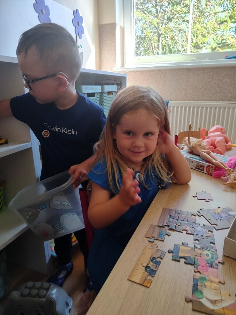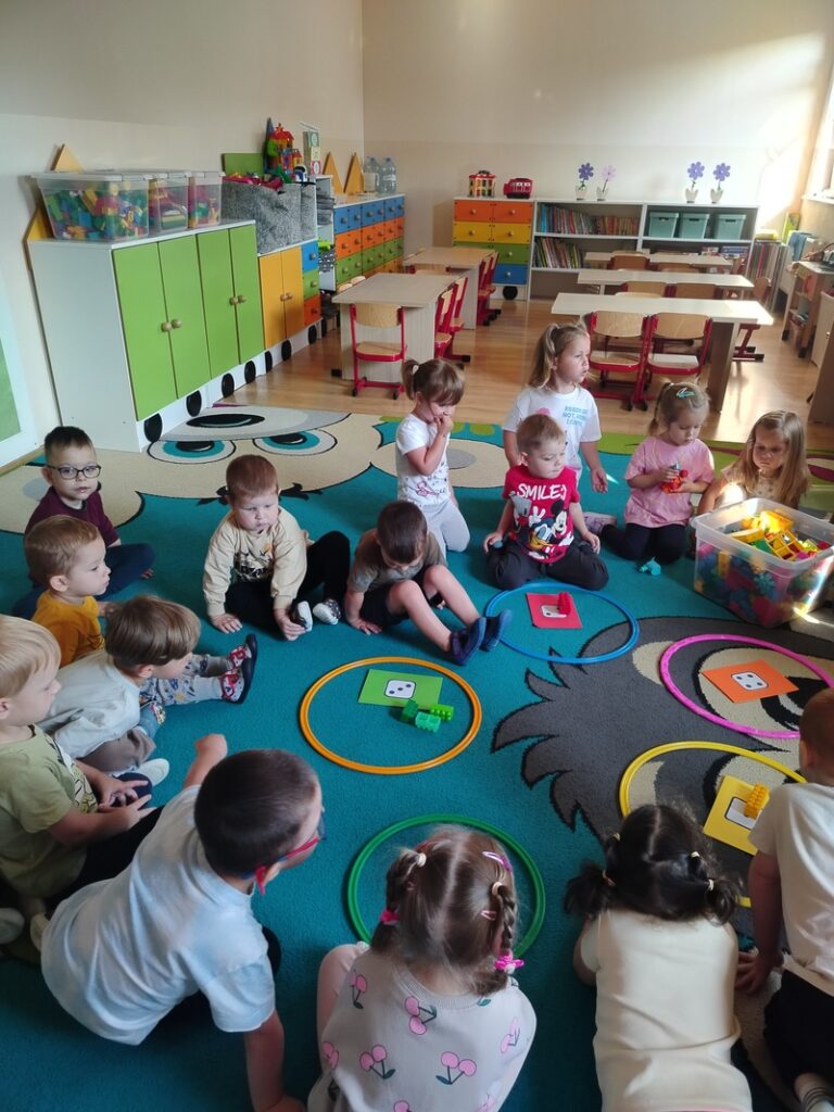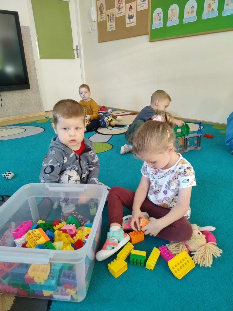 Pierwsze dni w przedszkolu Zajączki spędziły na radosnej zabawie, integracji grupy oraz poznawaniu przestrzeni sali i znaczków, które pomagają odnaleźć się w codziennych aktywnościach. Uczestniczymy w zajęciach, które wspierają naszą adaptację – poznajemy zasady, uczymy się współpracy i budujemy poczucie bezpieczeństwa. Choć czasem pojawia się tęsknota za rodzicami, wspólnie uczymy się radzić sobie z emocjami. Dzięki ciepłej atmosferze i codziennym rytuałom dzieci coraz śmielej uczestniczą w życiu grupy. Każdy dzień przynosi nowe doświadczenia, a Zajączki z entuzjazmem odkrywają uroki życia przedszkolnego.