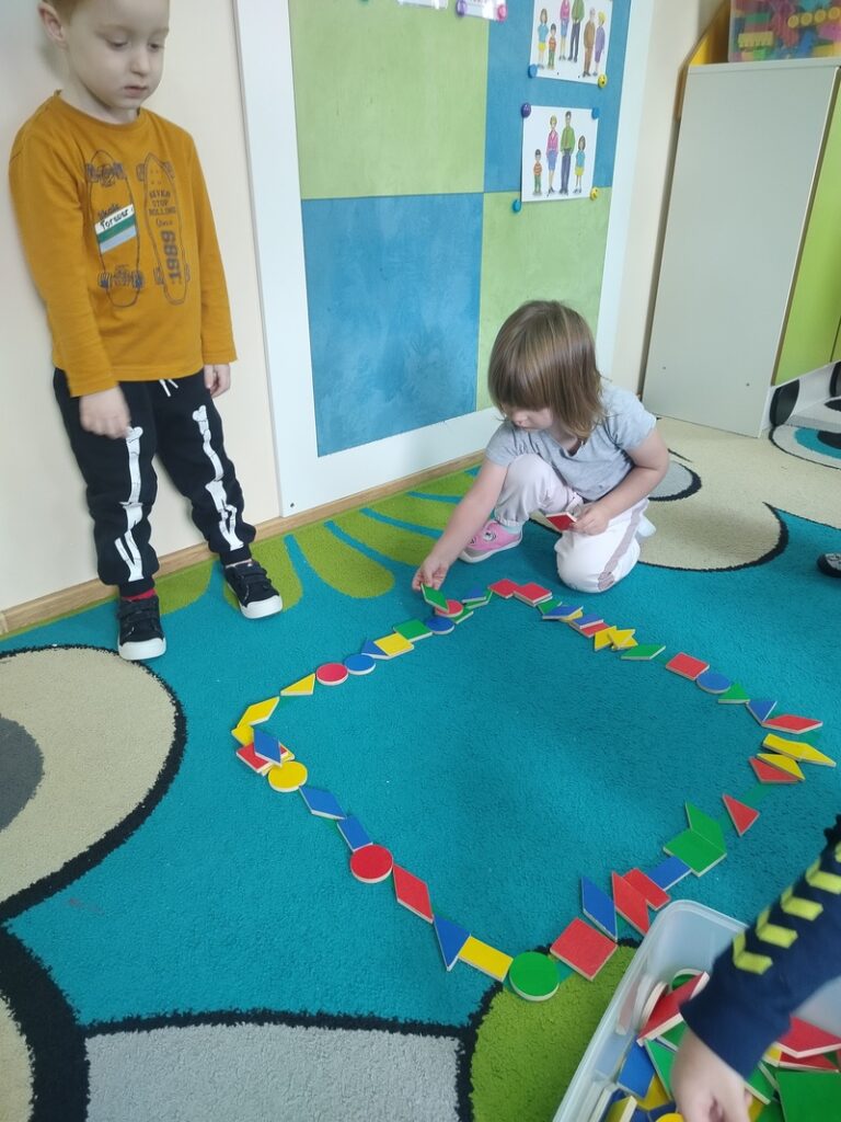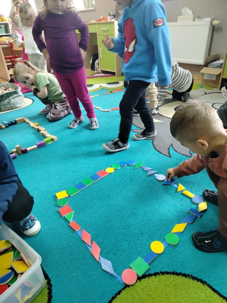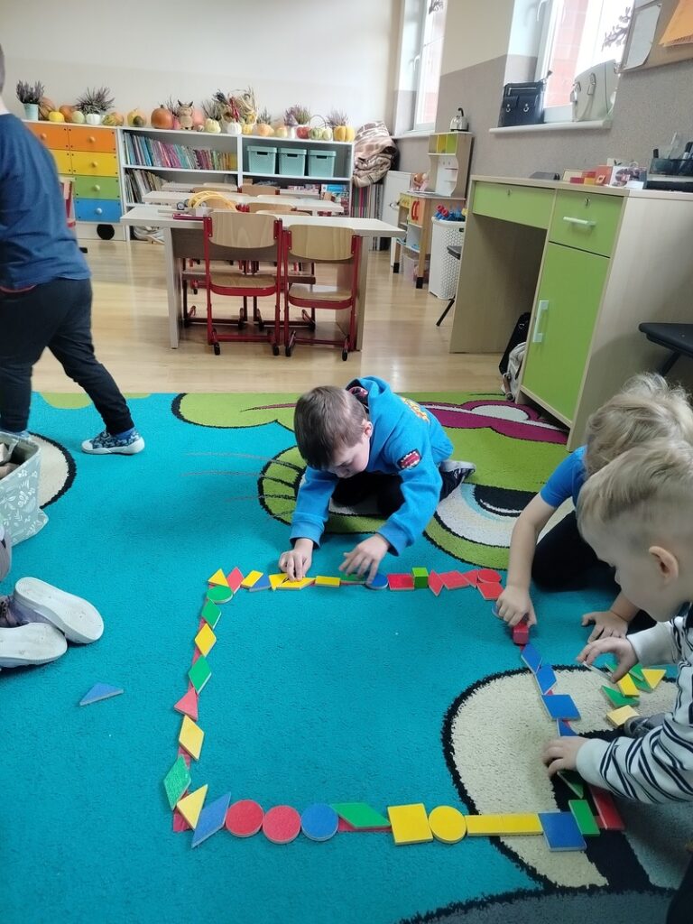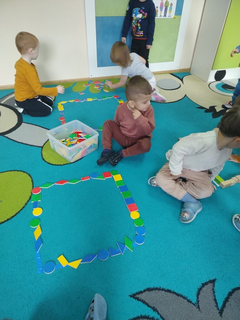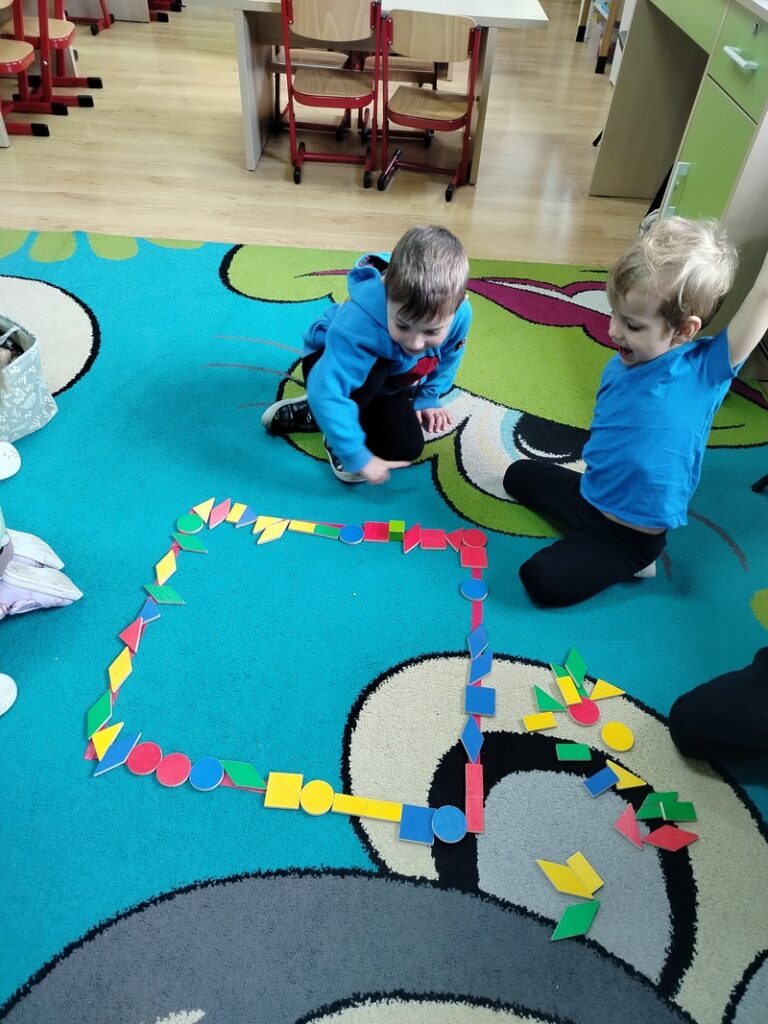 Na początku listopada Zajączki rozmawiały o tym, co najważniejsze – o rodzinie i bliskich. Dzieci z zaangażowaniem wymieniały członków swoich rodzin, opowiadały o wspólnych chwilach i uczyły się, jak okazywać miłość oraz szacunek najbliższym. Poznaliśmy także figurę geometryczną – kwadrat. Dzieci nie tylko nauczyły się go rozpoznawać, ale również zastosowały tę wiedzę w praktyce: układały kwadratowe elementy, tworzyły kompozycje i odkrywały, gdzie w otoczeniu można znaleźć tę figurę. To były dni pełne ciepła, rozmów i twórczego działania – budujące więzi i rozwijające dziecięcą ciekawość świata.