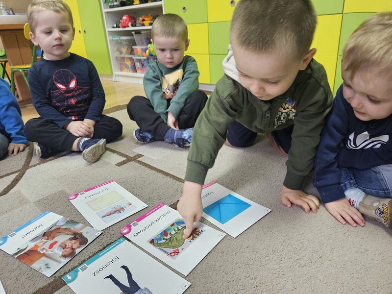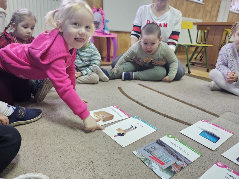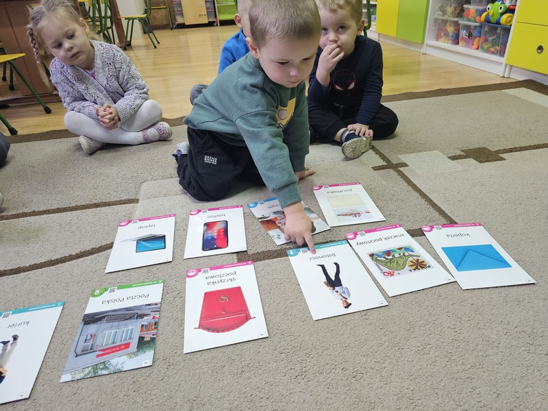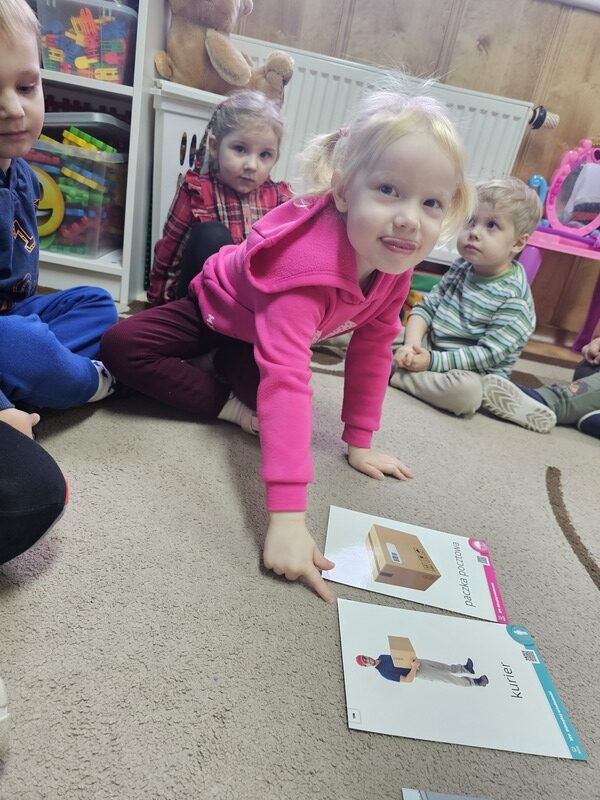 Podczas zajęć dzieci poznały specyfikę pracy kuriera oraz funkcjonowanie poczty. Przedszkolaki dowiedziały się, jaką drogę pokonuje list i paczka – od nadania aż do odbiorcy. Następnie dzieci z dużym zaangażowaniem bawiły się w pocztę i kuriera, wcielając się w różne role i utrwalając zdobytą wiedzę poprzez zabawę.
