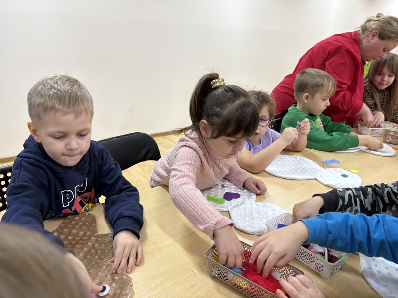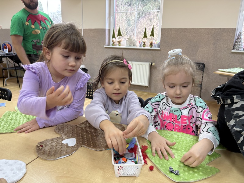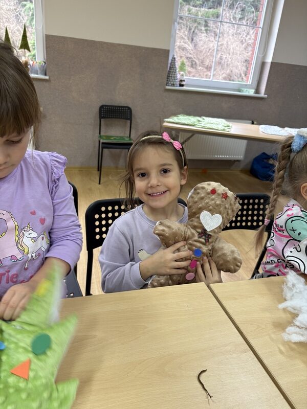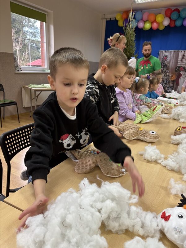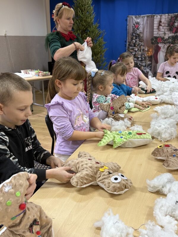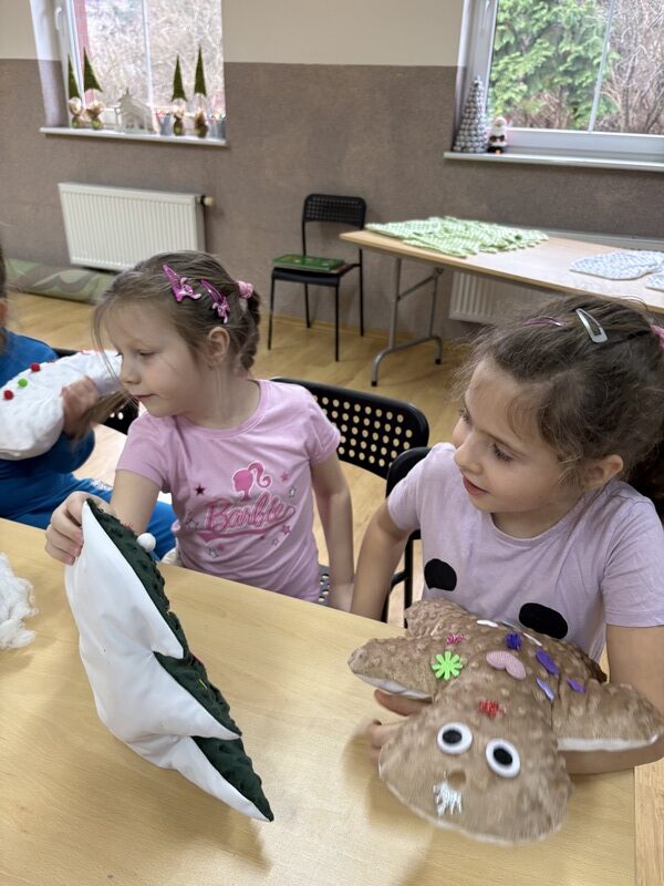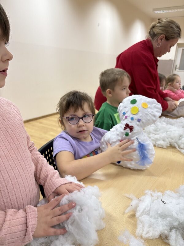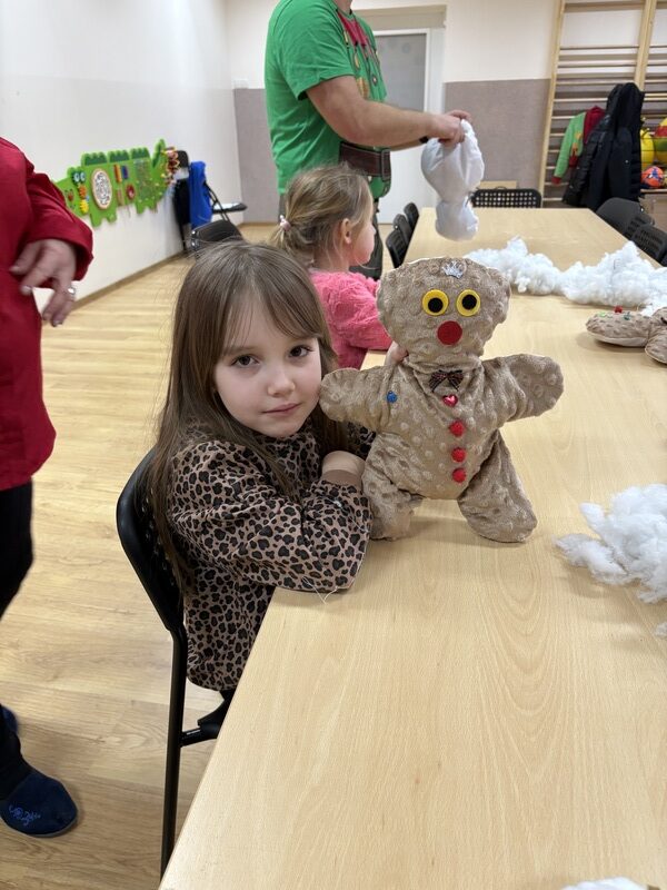Podczas warsztatów dzieci własnoręcznie wykonały miękką przytulankę. Do wyboru były trzy wzory: bałwanek, choinka oraz pierniczek. Zajęcia rozwijały kreatywność, zdolności manualne i sprawiły dzieciom wiele radości. Każdy tygrysek wrócił do domu z wyjątkową, własnoręcznie zrobioną przytulanką.