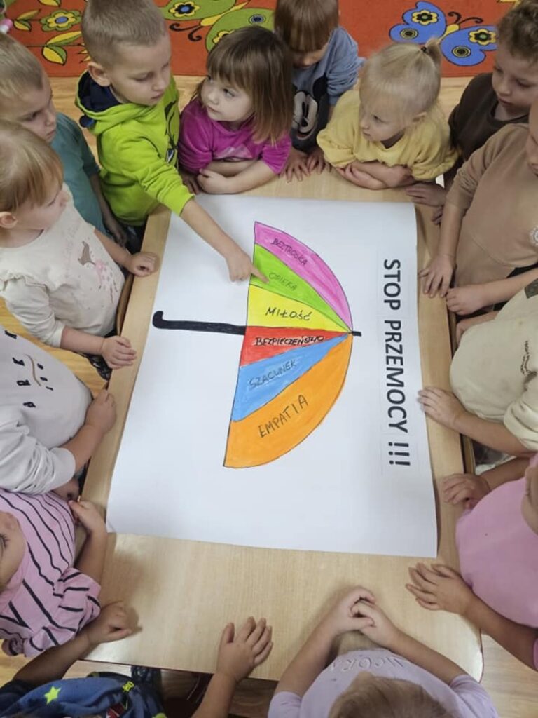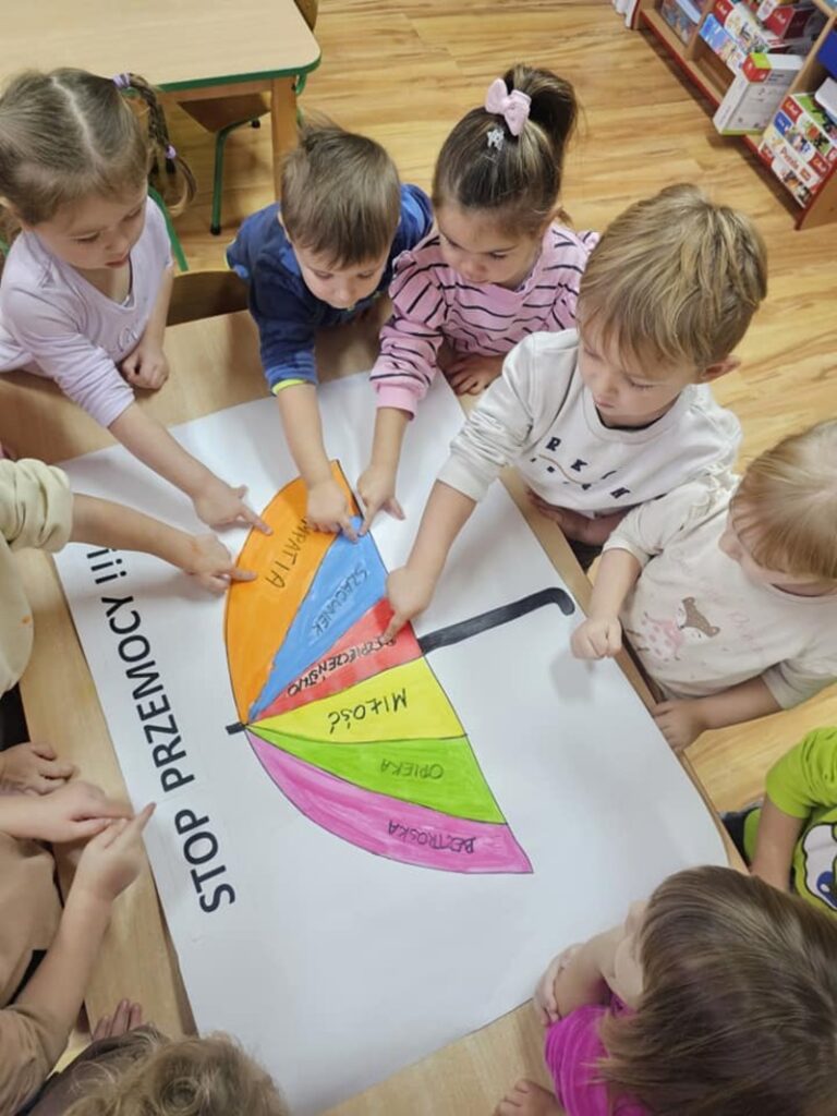 W naszym przedszkolu zakończyliśmy realizację niezwykle ważnej kampanii społecznej „Dzieciństwo bez przemocy”. W ramach akcji każda z grup przedszkolnych wzięła udział w cyklu zajęć edukacyjnych na temat rozpoznawania przemocy oraz sposobów radzenia sobie w trudnych sytuacjach.