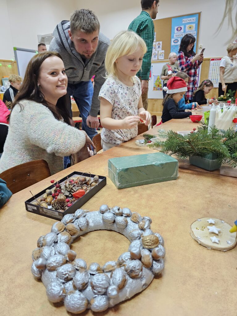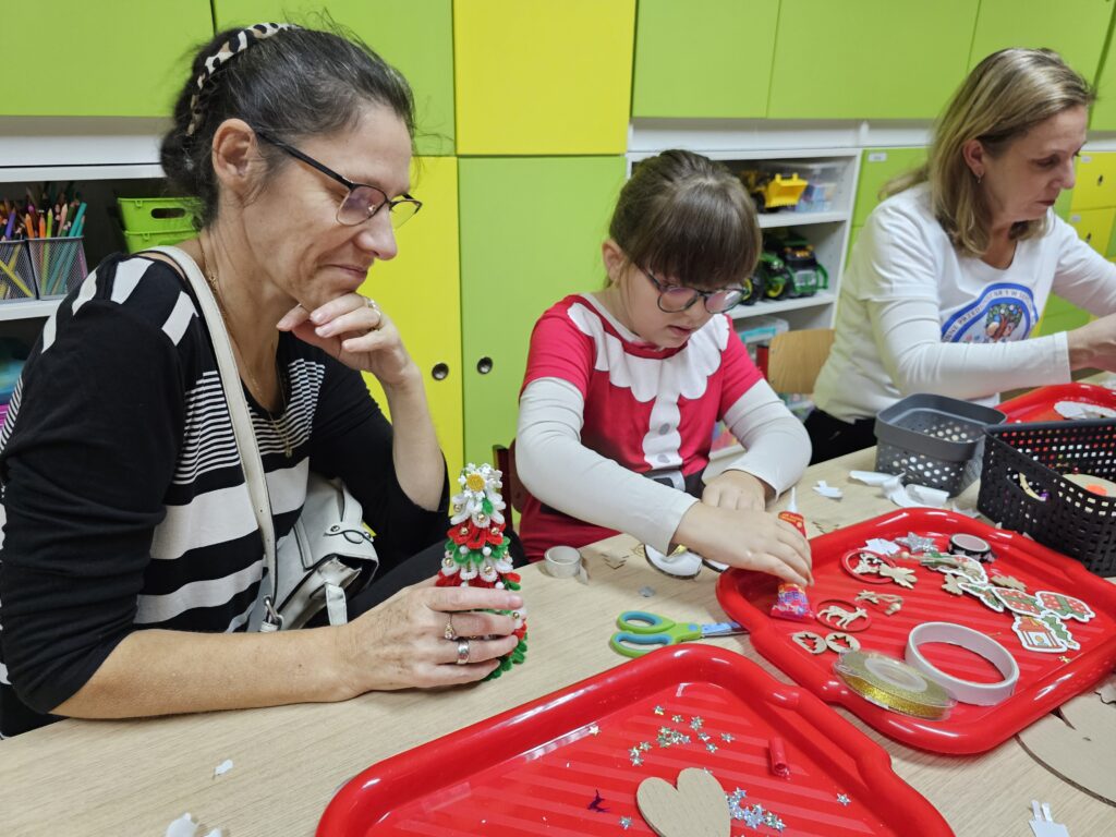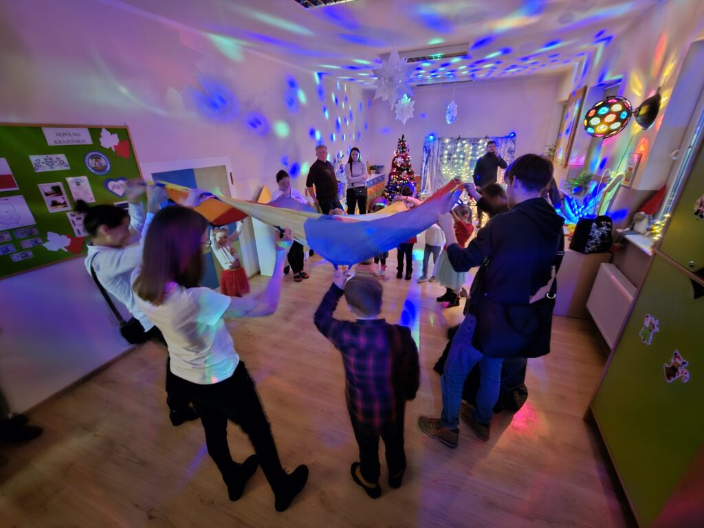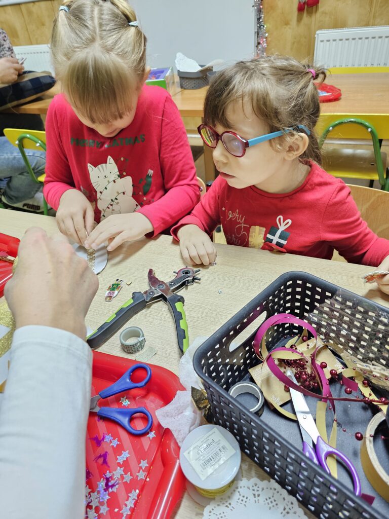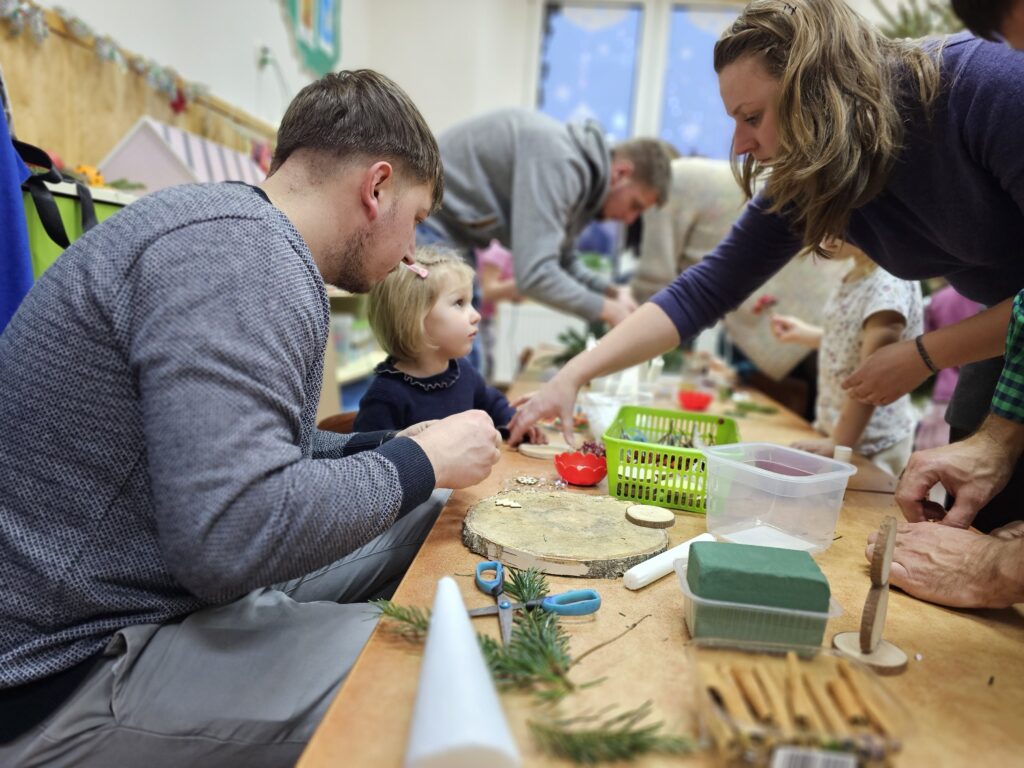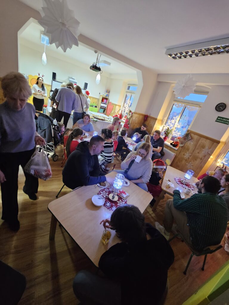 Nie zabrakło również atrakcji dla miłośników kreatywnej zabawy. Warsztaty plastyczno-techniczne cieszyły się ogromnym zainteresowaniem – uczestnicy mogli samodzielnie stworzyć stroiki i ozdoby świąteczne, które z pewnością ozdobią ich domy. Dla tych, którzy chcieli uwiecznić wspomnienia, przygotowaliśmy fotobudkę, a najmłodsi bawili się doskonale podczas zabaw taneczno-ruchowych.
