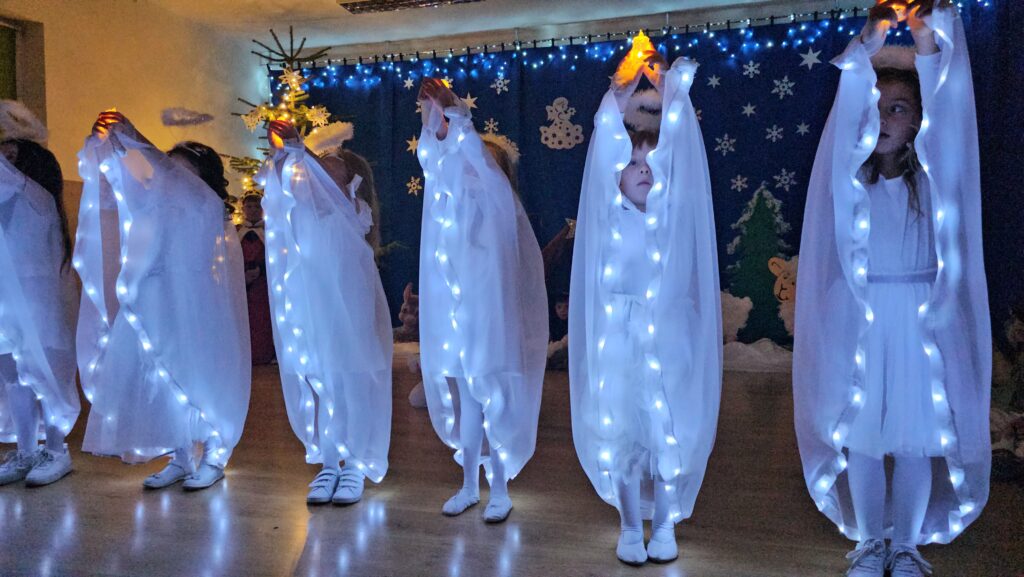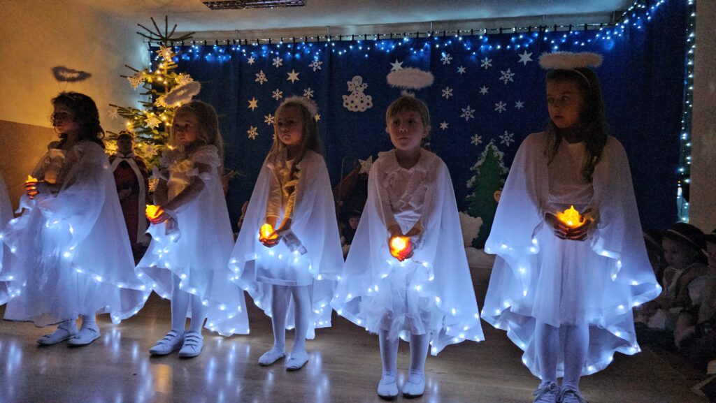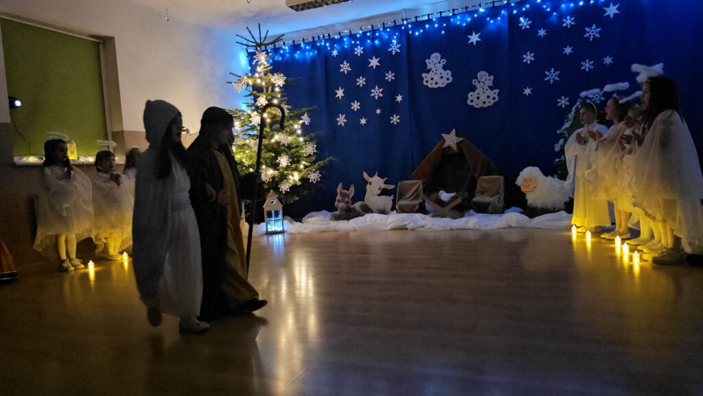 Kulminacją wieczoru były jasełka w wykonaniu dzieci z grupy Tygryski. Mali artyści zachwycili publiczność swoim występem, wprowadzając wszystkich w świąteczny nastrój.