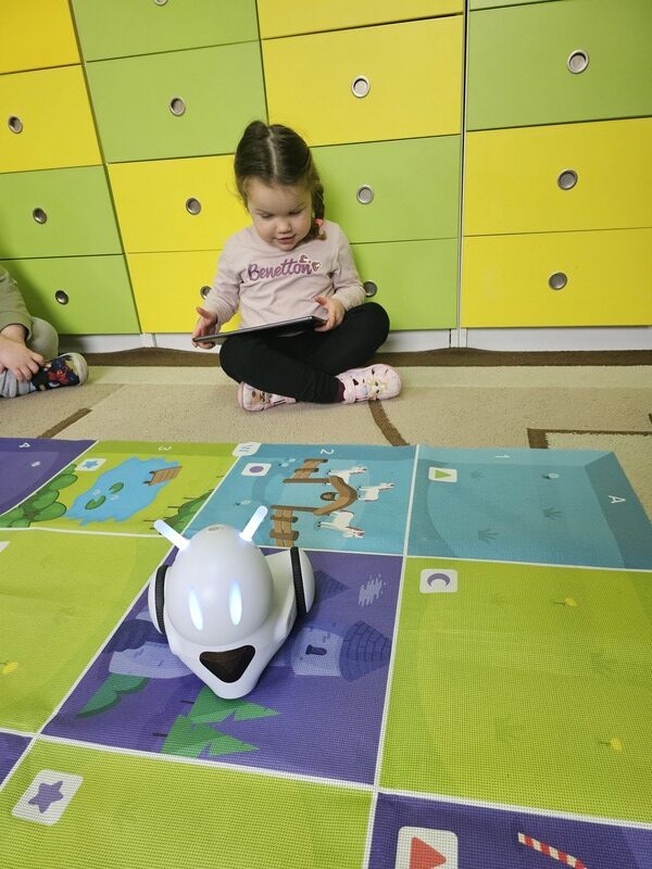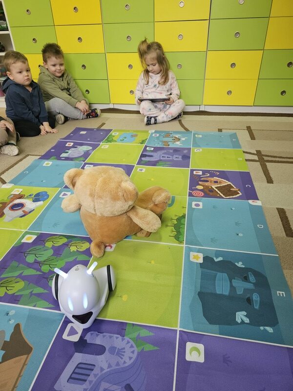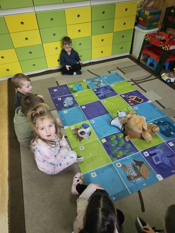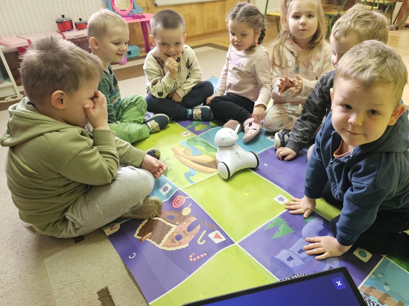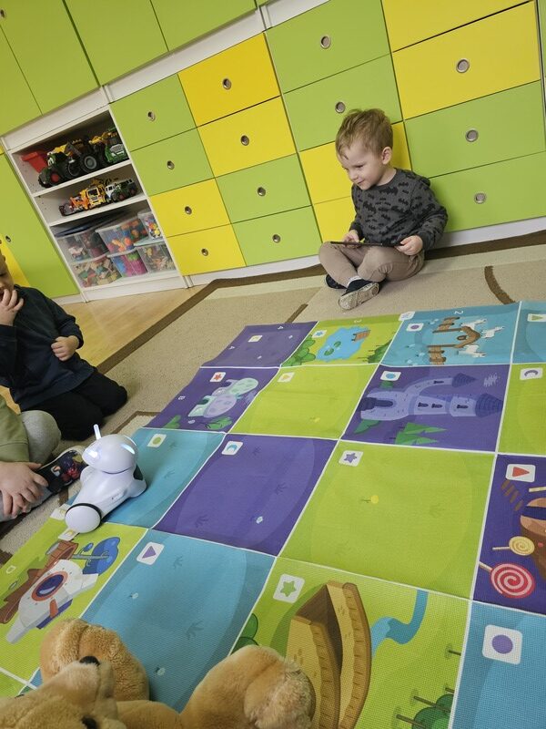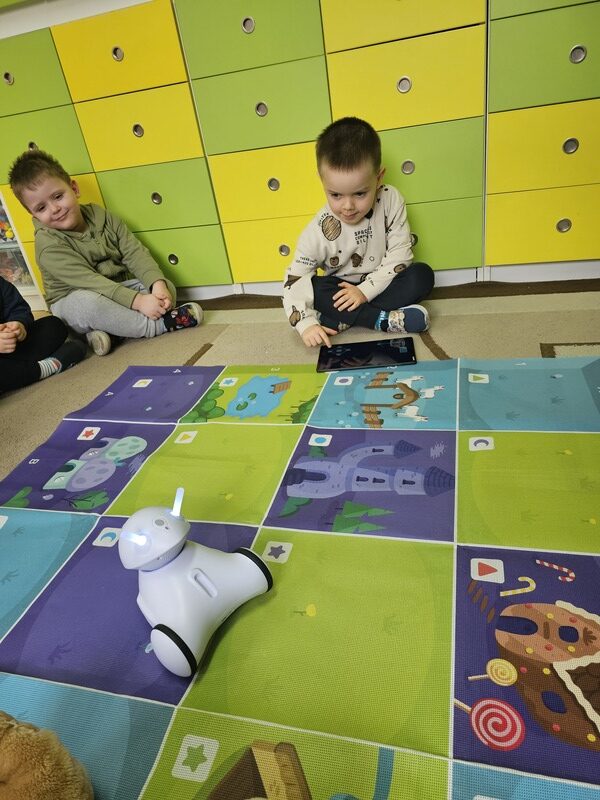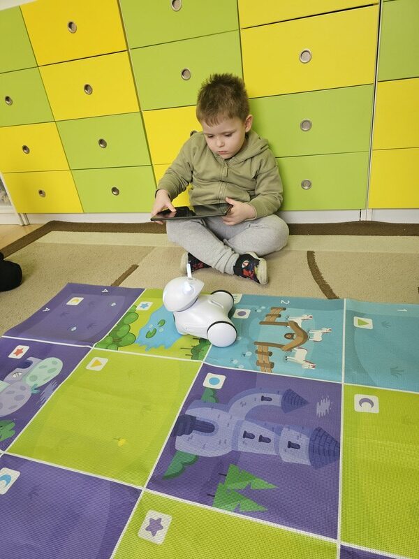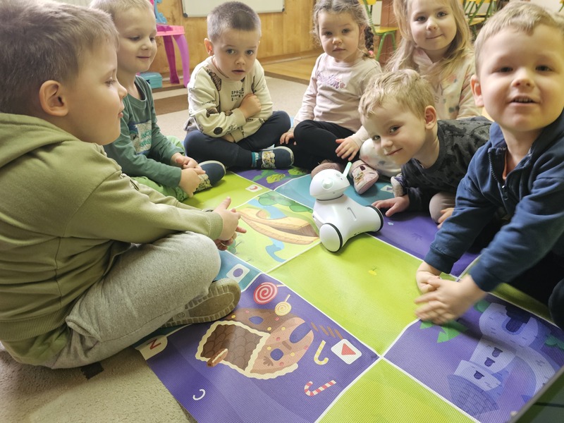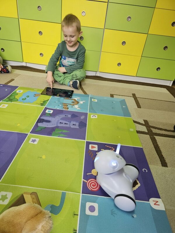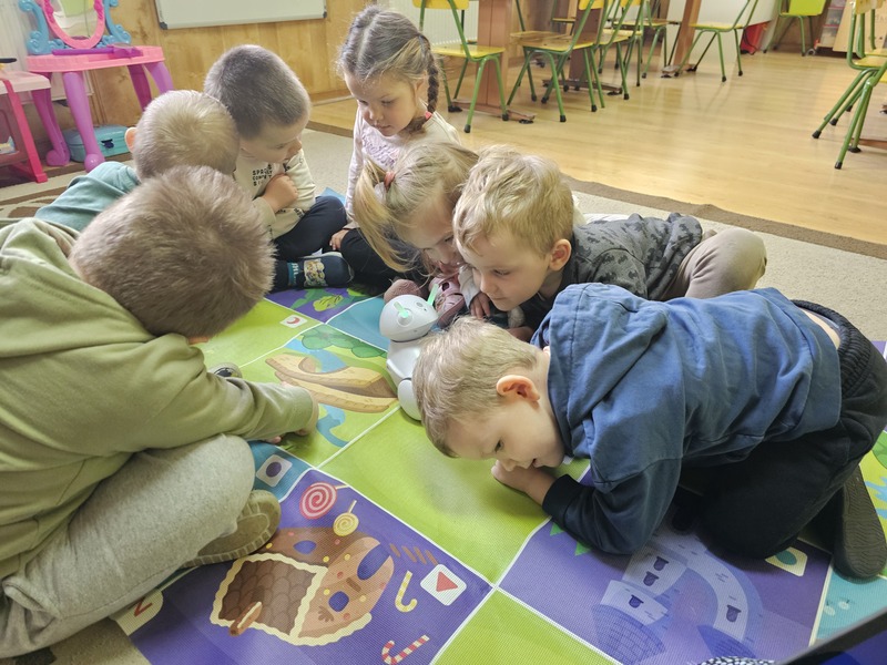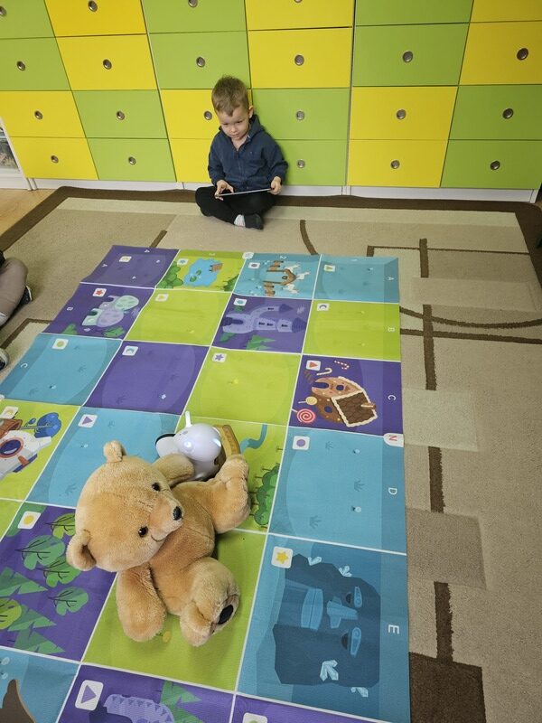 Dzieci z grupy „Żabki” uczestniczyły w niezwykle ciekawych zajęciach z wykorzystaniem robota Photon Robot. Przedszkolaki miały okazję poznać podstawy programowania poprzez zabawę, ucząc się wydawania poleceń i obserwowania, jak robot reaguje na ich działania. Zajęcia rozwijały logiczne myślenie, kreatywność oraz umiejętność współpracy w grupie. Dla dzieci było to fascynujące doświadczenie, które połączyło naukę z radością odkrywania nowych technologii.