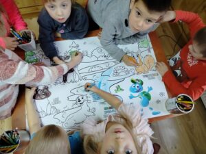 Tygryski rozpoczęły realizację projektu „Mamo, Tato, Wolę Wodę”. Ten projekt odgrywa bardzo ważną rolę, edukując dzieci na temat zdrowego stylu życia i znaczenia wody w codziennej diecie. Poznaliśmy już przygody zwierząt i zainspirowaliśmy się ich historiami. Ostatnio mieliśmy niesamowitą zabawę, kolorując ogromne kolorowanki ze Zdrojkiem! Dzieci miały okazję wykorzystać swoją kreatywność i wyobraźnię, tworząc piękne, barwne prace. Teraz czekają nas jeszcze kolejne fascynujące spotkania i aktywności związane z tym projektem!
