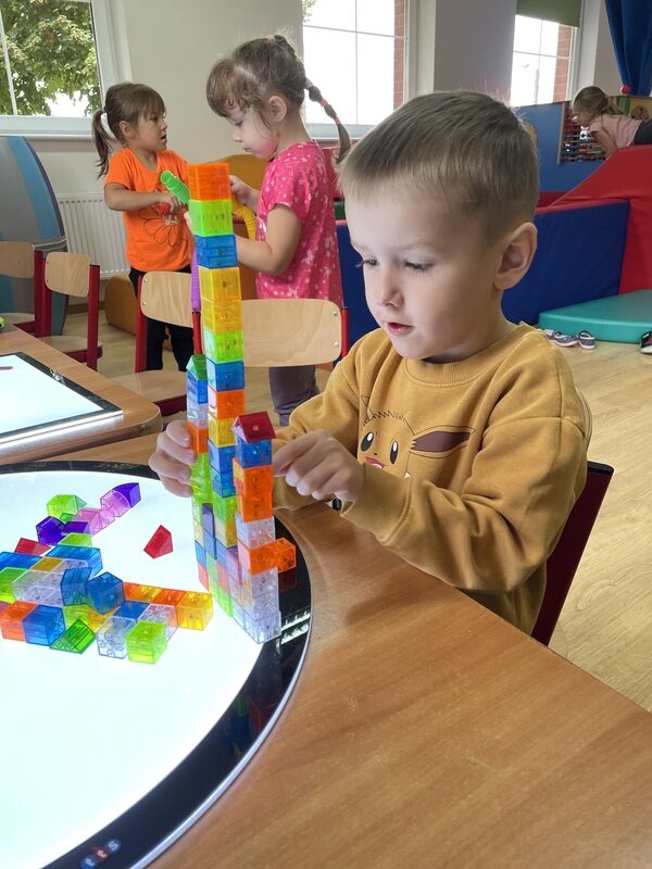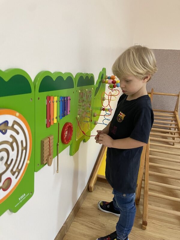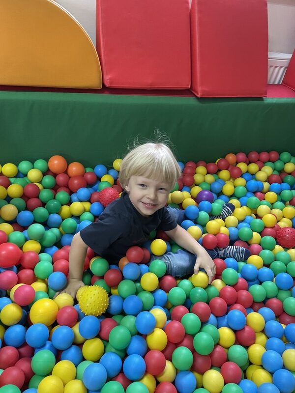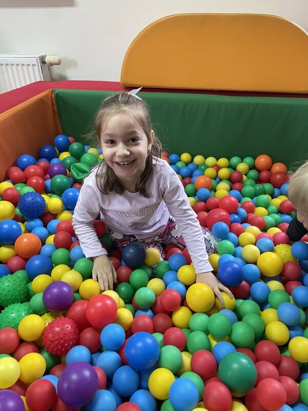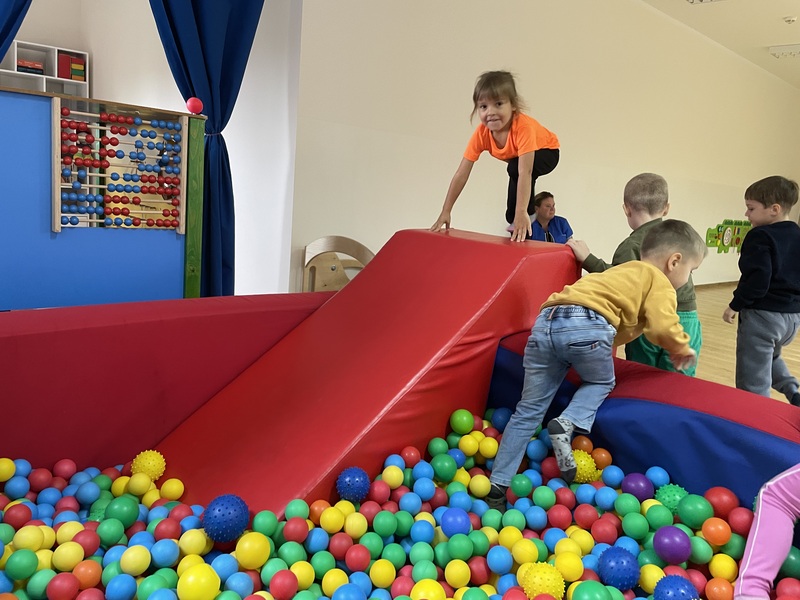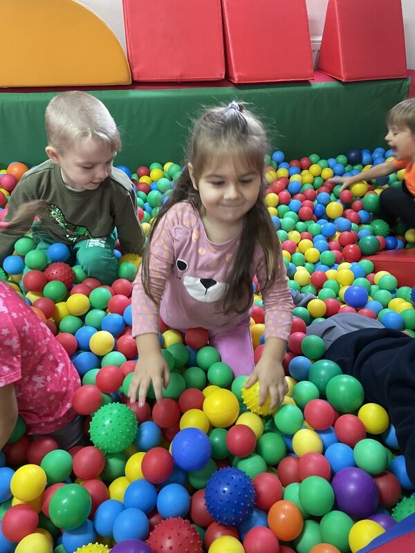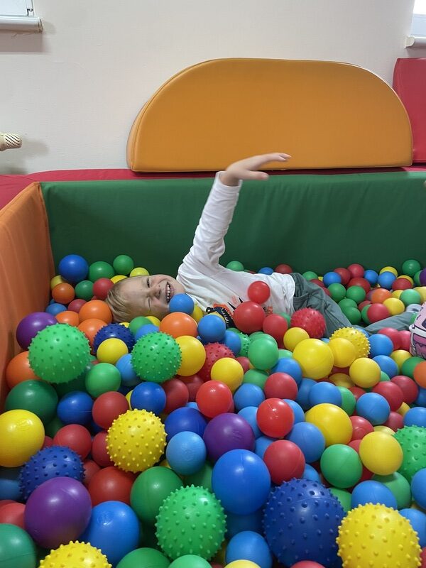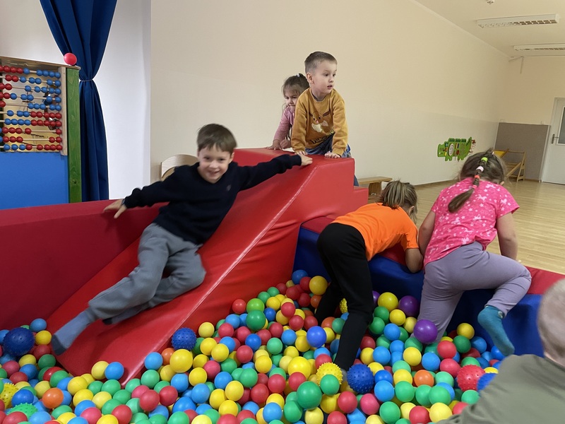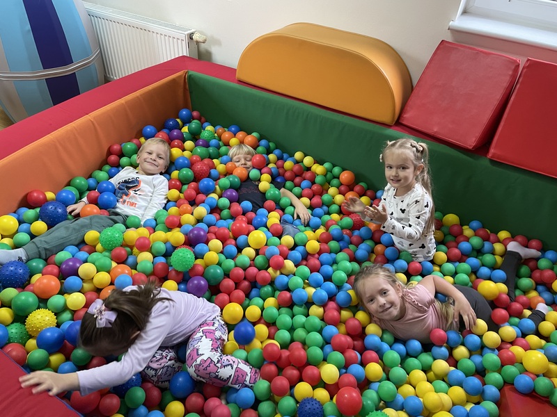 Sala ruchu i doświadczania świata to miejsce, które stymuluje wszystkie zmysły. Każdy jej kąt kryje w sobie coś wyjątkowego: dzieci mogą biegać, skakać i zanurzać się w kolorowych piłeczkach. W tej przestrzeni mogą swobodnie wyrażać siebie, rozwijać motorykę oraz zmysł równowagi i koordynacji.