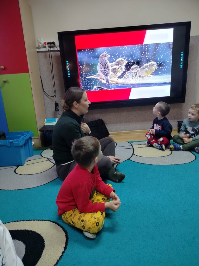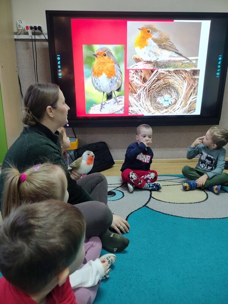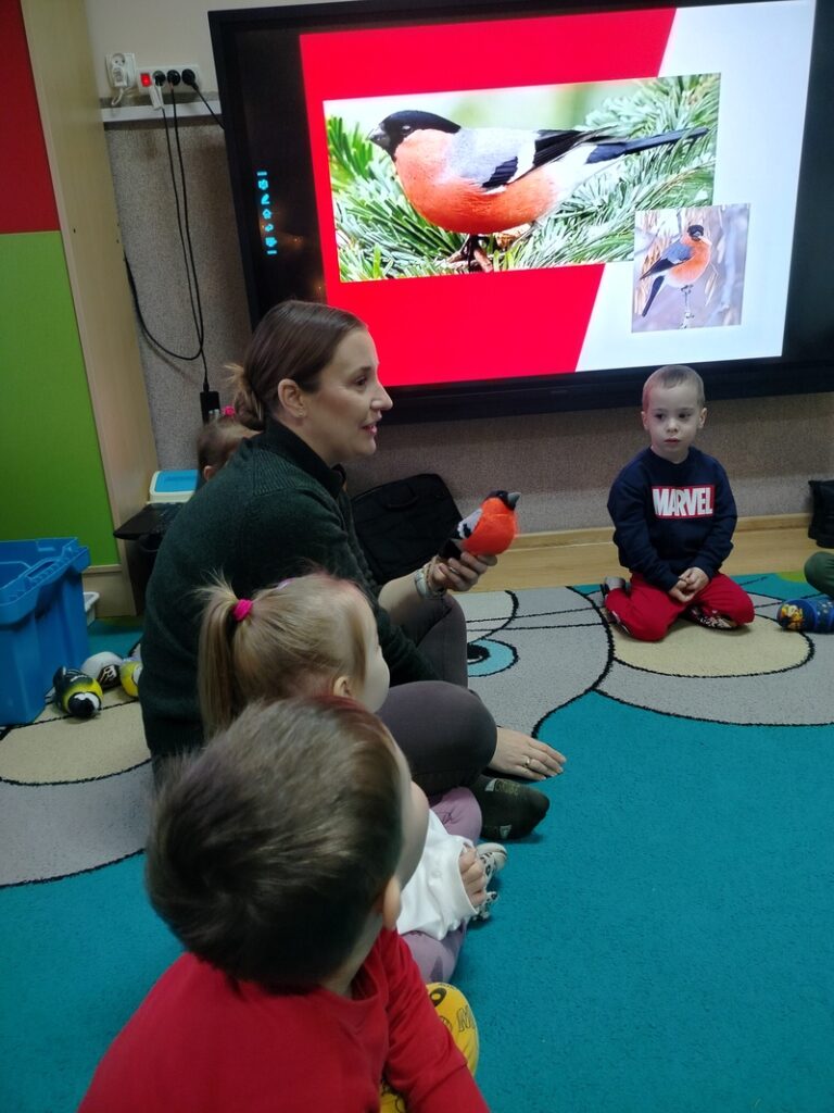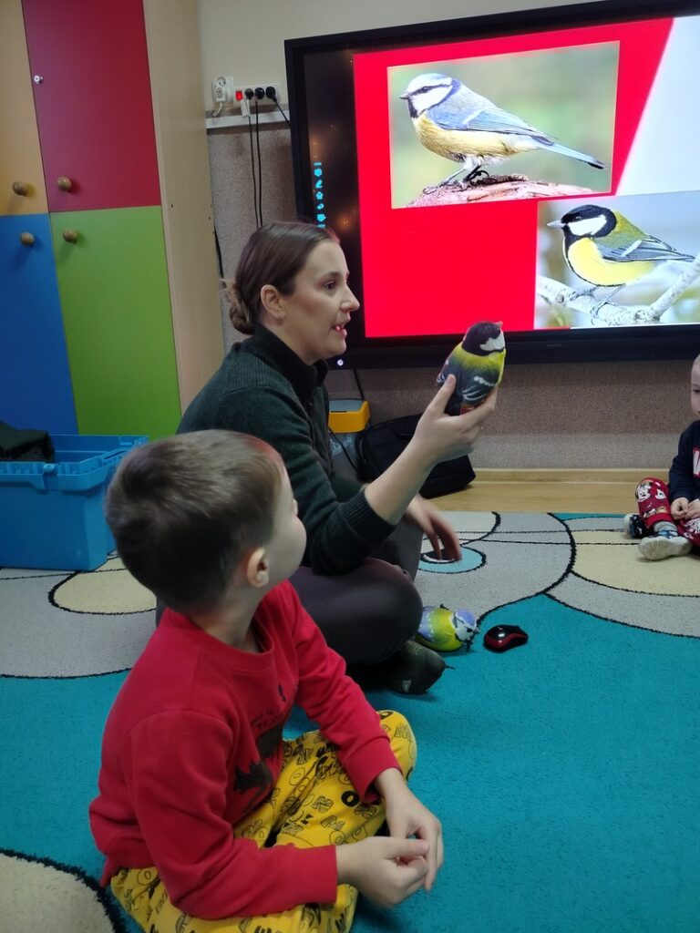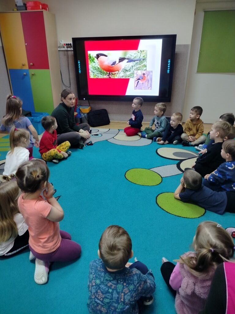 Zajączki dowiedziały się podczas zimowych zajęć przyrodniczych prowadzonych przez edukatora Krajeńskiego Parku Krajobrazowego, jakie ptaki zostają z nami na zimę i w jaki sposób można im mądrze pomagać. Dzieci odkrywały, kiedy warto dokarmiać ptaki, czym je częstować oraz dlaczego odpowiedzialne wsparcie jest tak ważne dla ich bezpieczeństwa. Spotkanie łączyło naukę z zabawą, rozwijając wrażliwość na potrzeby skrzydlatych mieszkańców naszej okolicy.