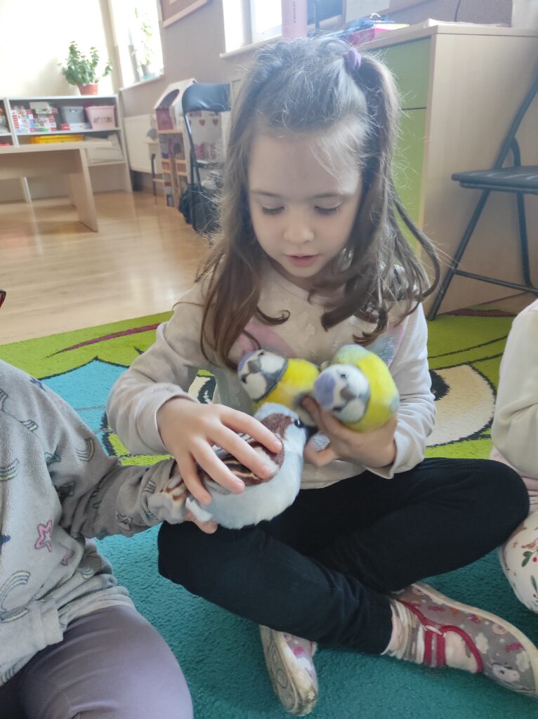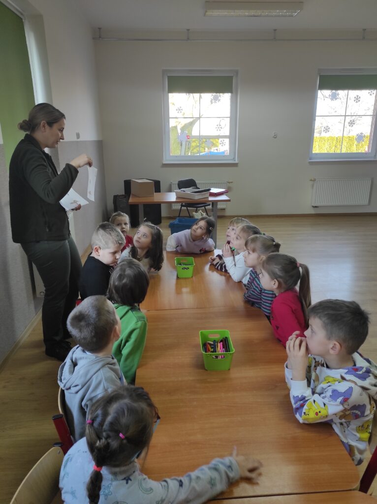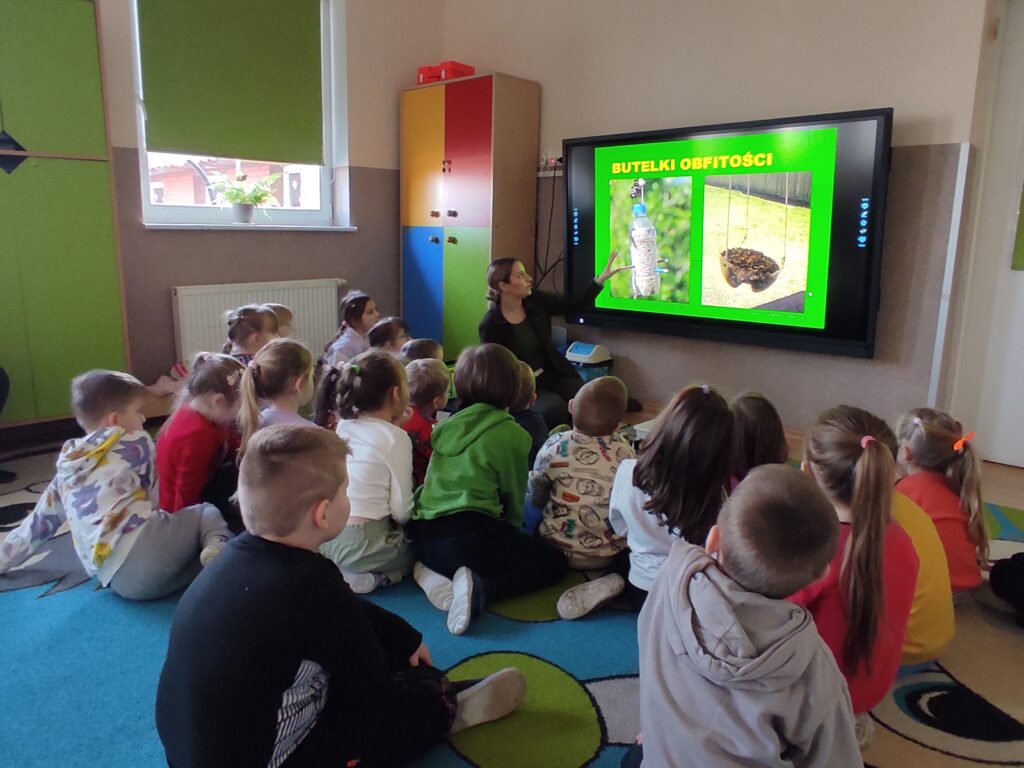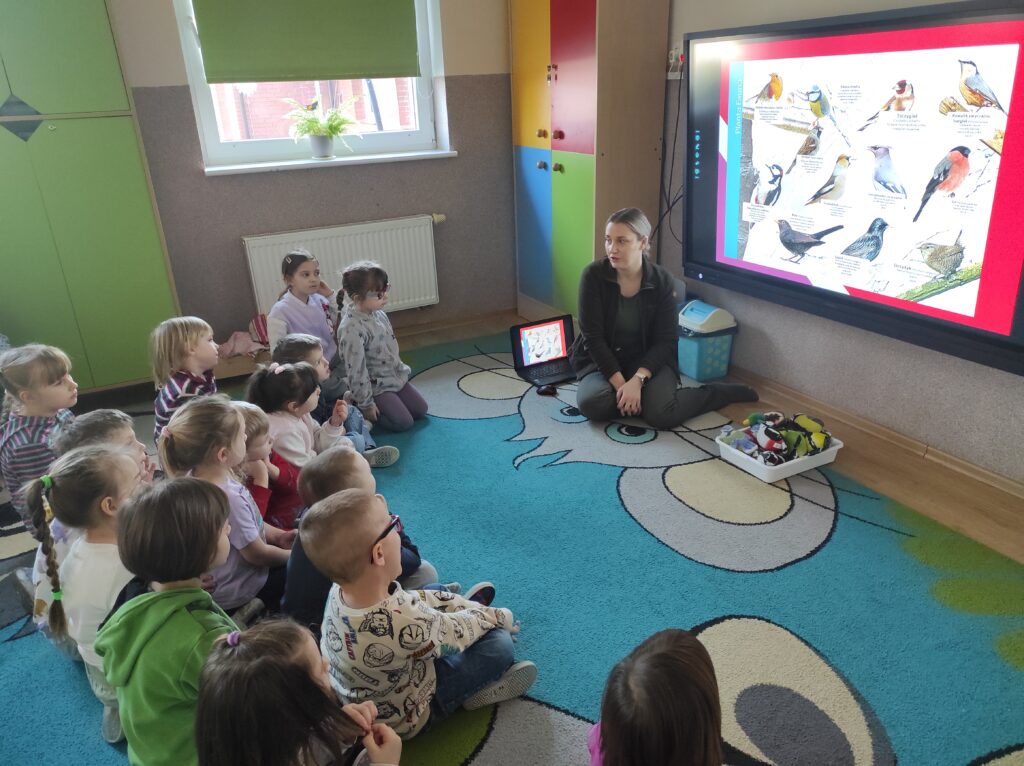 W środę 5 lutego 2025 r. dzieci z grupy „Żabki” i „Zajączki” odwiedziła edukator z Krajeńskiego Parku Krajobrazowego – pani Monika Ewert. Dzieci z ogromnym zaciekawieniem uczestniczyły w tym spotkaniu. Pani Monika opowiedziała o gatunkach ptaków, które zimują w Polsce, zachęcała dzieci do dokarmiania ptaków w okresie zimy i wytłumaczyła, jak mądrze pomagać naszym skrzydlatym przyjaciołom, aby przetrwały ten trudny czas. Pani edukator podkreśliła również, jak ważna jest systematyczność oraz odpowiednio dobrany pokarm. Aktywny udział przedszkolaków został nagrodzony upominkami – karmnikiem dla ptaków i książkami o ptakach.