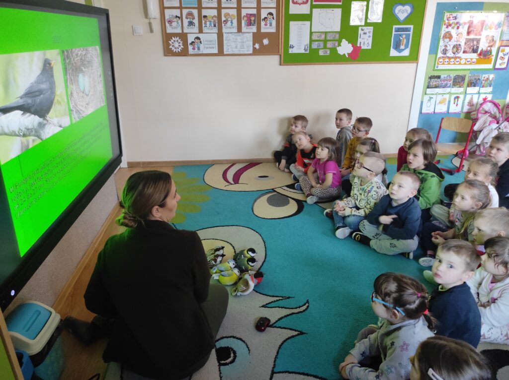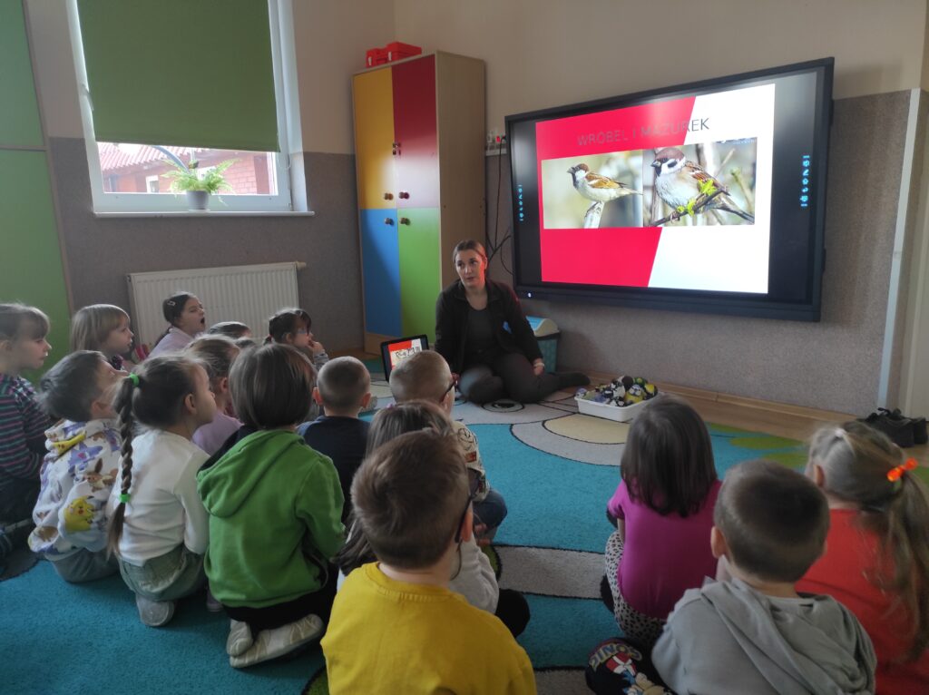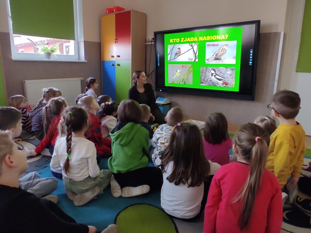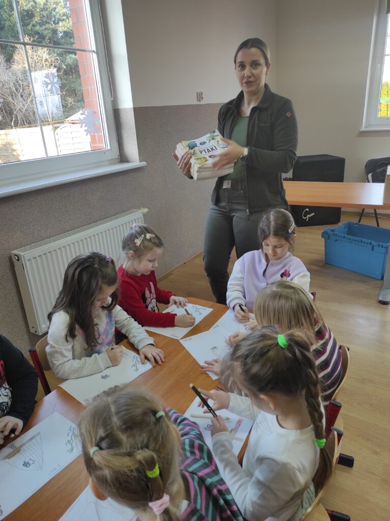 W środę 5 lutego 2025 r. dzieci z grupy „Żabki” i „Zajączki” odwiedziła edukator z Krajeńskiego Parku Krajobrazowego – pani Monika Ewert. Dzieci z ogromnym zaciekawieniem uczestniczyły w tym spotkaniu. Pani Monika opowiedziała o gatunkach ptaków, które zimują w Polsce, zachęcała dzieci do dokarmiania ptaków w okresie zimy i wytłumaczyła, jak mądrze pomagać naszym skrzydlatym przyjaciołom, aby przetrwały ten trudny czas. Pani edukator podkreśliła również, jak ważna jest systematyczność oraz odpowiednio dobrany pokarm. Aktywny udział przedszkolaków został nagrodzony upominkami – karmnikiem dla ptaków i książkami o ptakach.