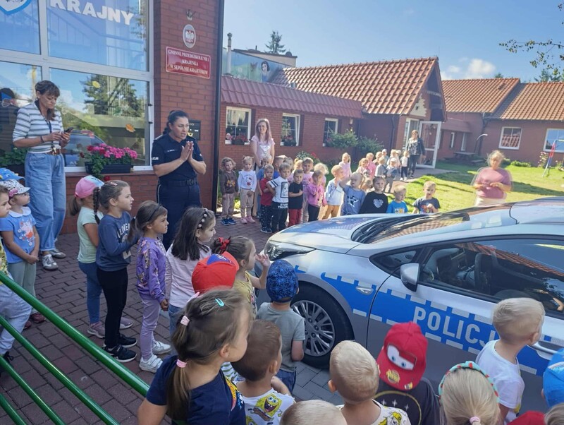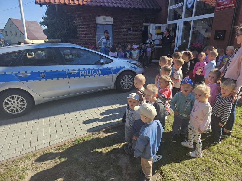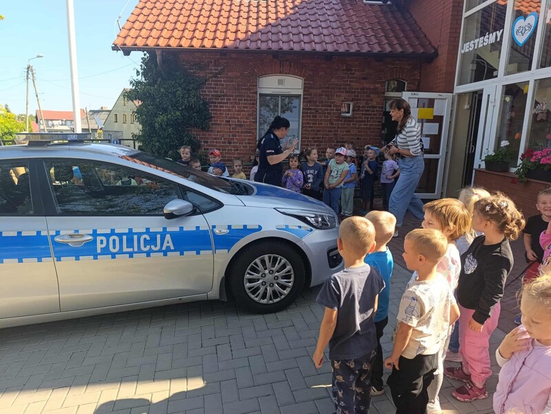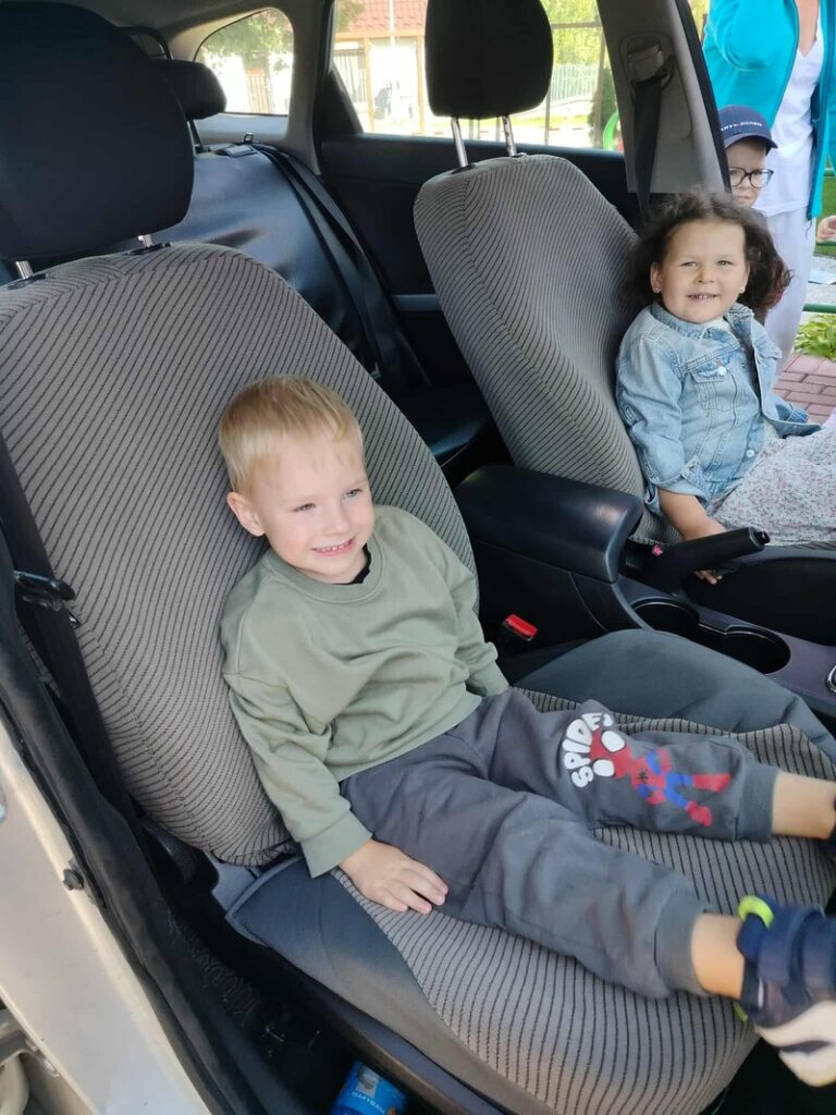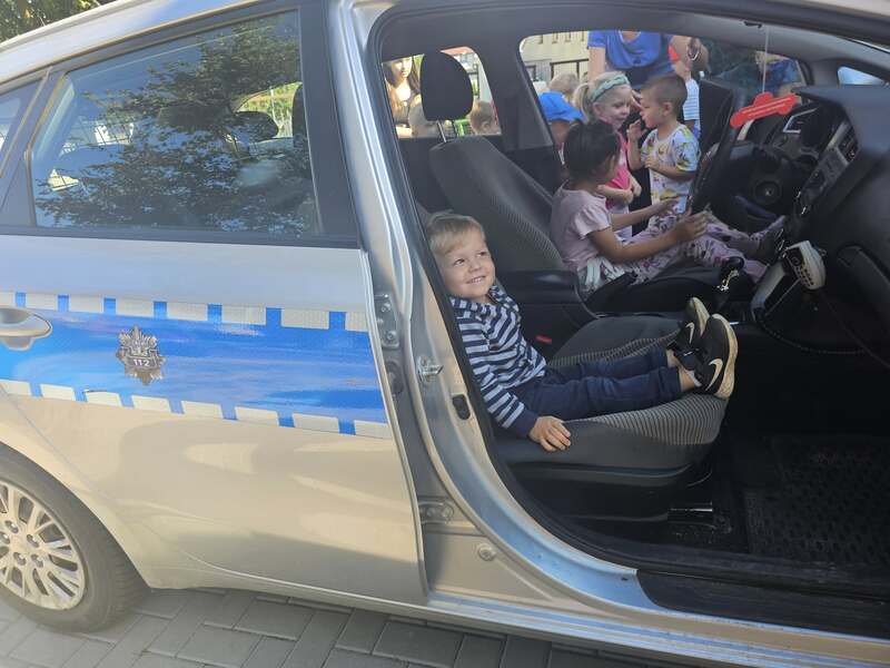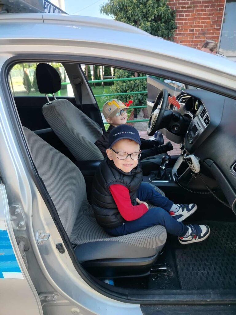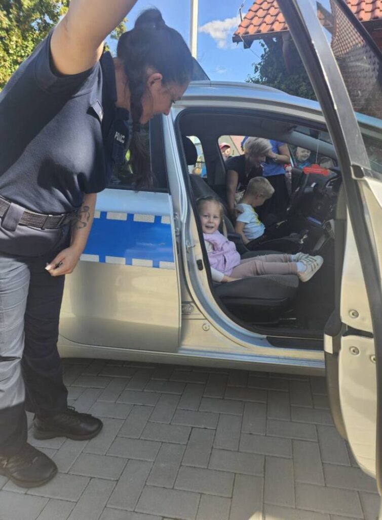 🚓 Dużą atrakcją była możliwość obejrzenia radiowozu policyjnego z bliska. Dzieci z zaciekawieniem zaglądały do środka, poznawały wyposażenie pojazdu i zadawały pytania dotyczące pracy policji. Spotkanie przebiegło w miłej atmosferze i z pewnością na długo pozostanie w pamięci uczestników.