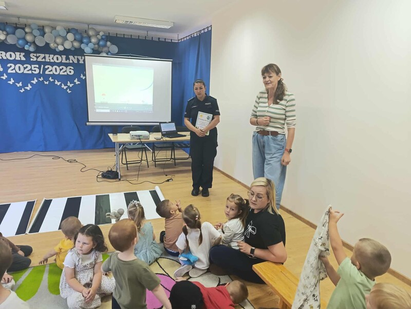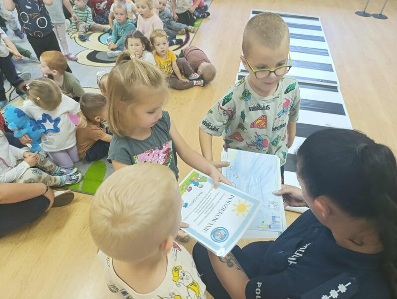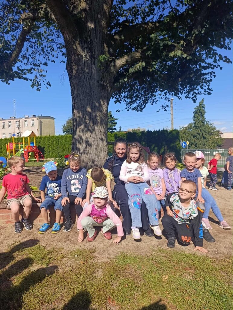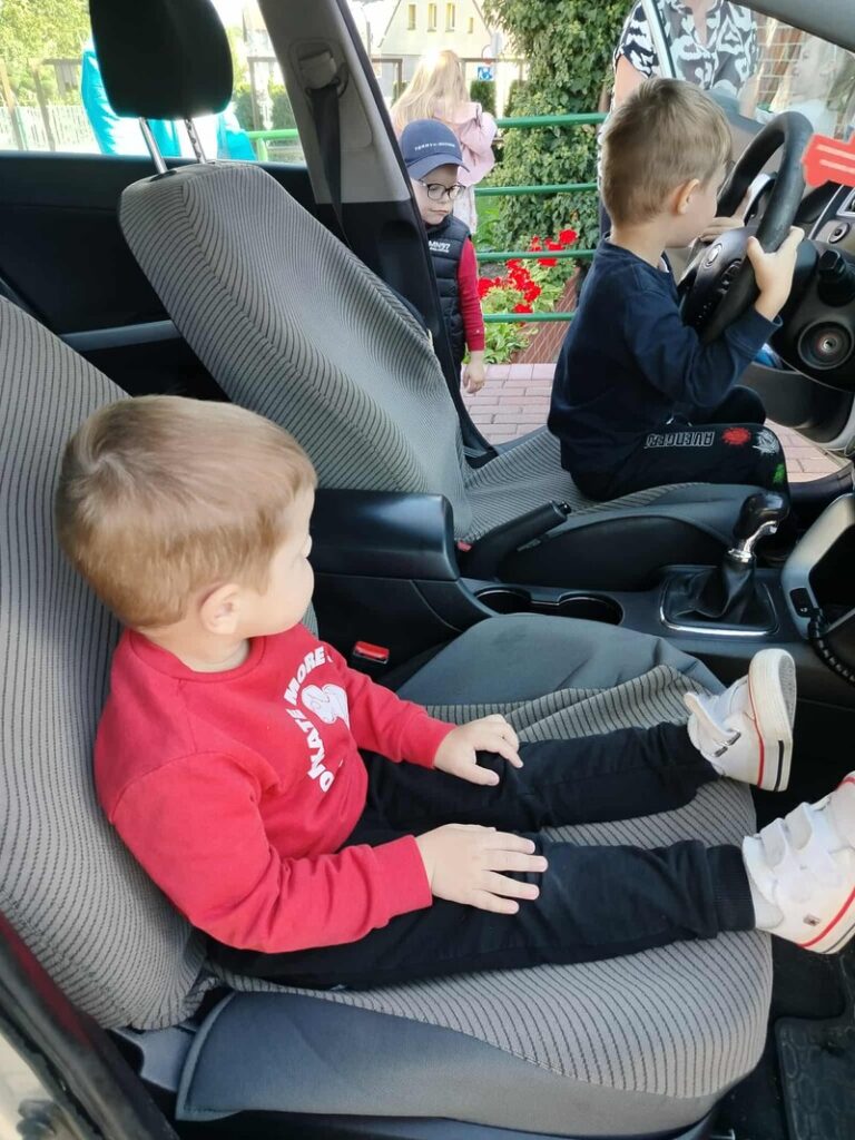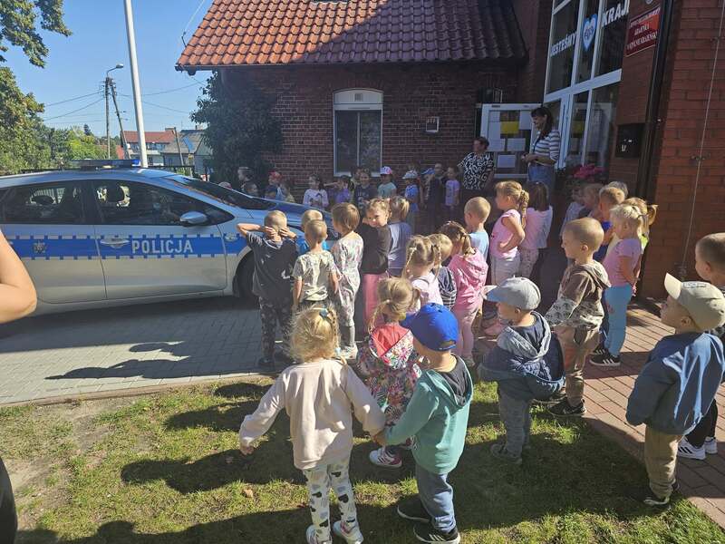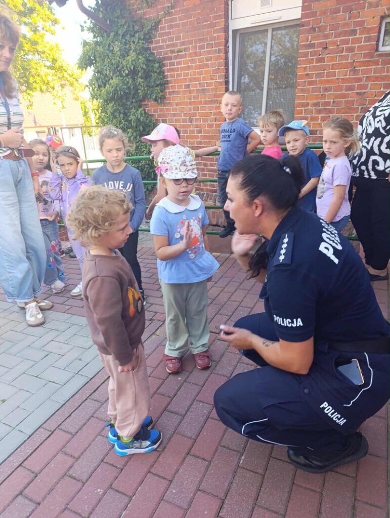 🚓 Dużą atrakcją była możliwość obejrzenia radiowozu policyjnego z bliska. Dzieci z zaciekawieniem zaglądały do środka, poznawały wyposażenie pojazdu i zadawały pytania dotyczące pracy policji. Spotkanie przebiegło w miłej atmosferze i z pewnością na długo pozostanie w pamięci uczestników.