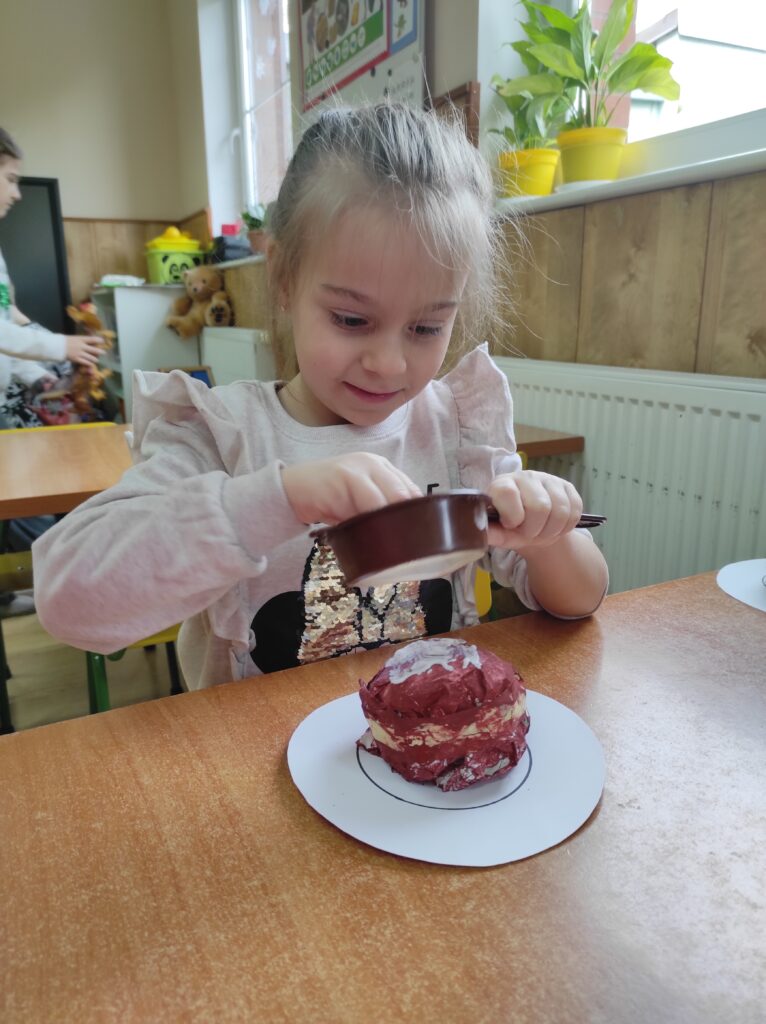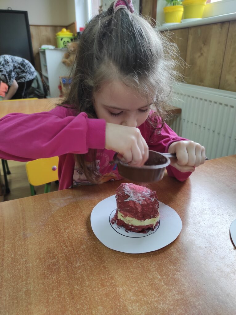 Na podwieczorek przedszkolaki zjadły ze smakiem pyszne faworki – wypieki naszych pań kucharek.