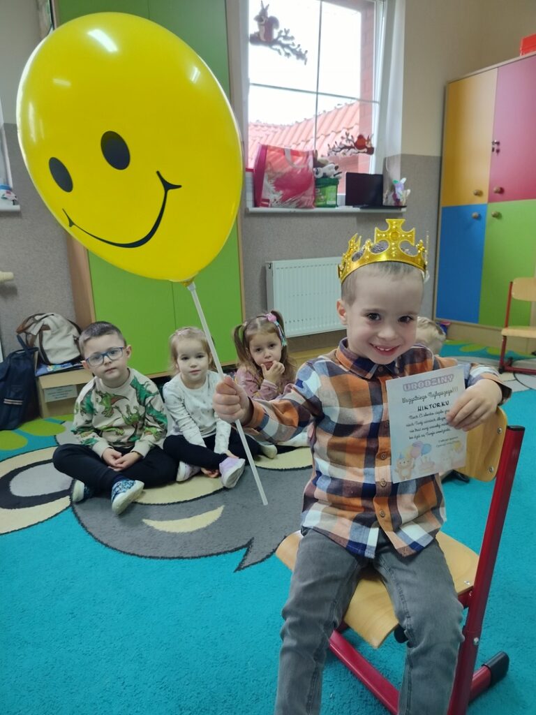 Dziś w grupie Zajączków rozbrzmiało głośne „Sto lat!” – świętowaliśmy 3. urodzinki Wiktora! Były serdeczne życzenia, wspólne zdjęcia i mnóstwo uśmiechów. Wiktorek otrzymał moc przytuleń, a jego dzień był pełen dziecięcej magii i radości. Życzymy Ci, Wiktorku, aby każdy dzień był tak wyjątkowy jak ten – kolorowy, pełen zabawy i dobrych serduszek wokół!