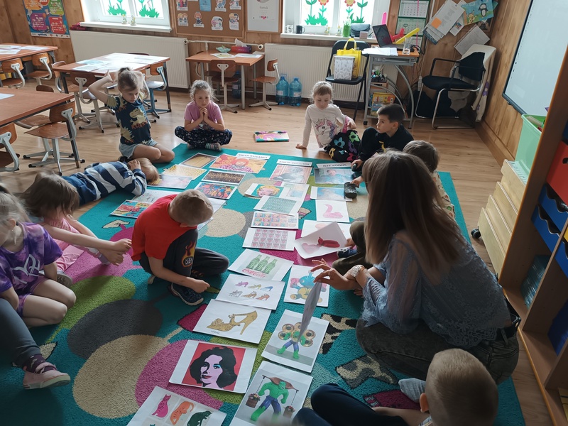 Ostatnie warsztaty, choć z powodu kapryśnej pogody odbyły się w przedszkolu, wcale nie straciły na atrakcyjności! Tematem zajęć była sztuka pop-art, czyli intensywne kolory, wyraziste formy i inspiracje kulturą masową. Mali artyści stworzyli barwne kompozycje, czerpiąc natchnienie z prac Andy’ego Warhola i Jeffa Koonsa – efekt? Prawdziwa eksplozja kreatywności!