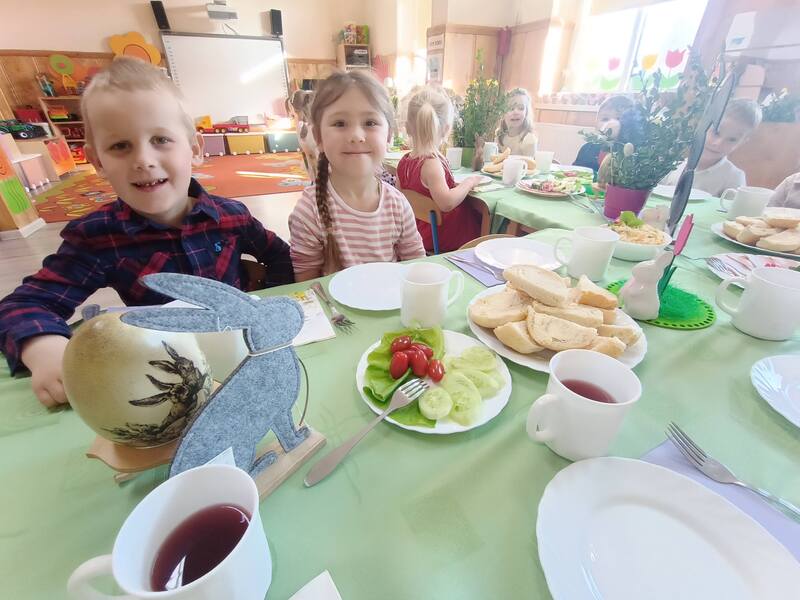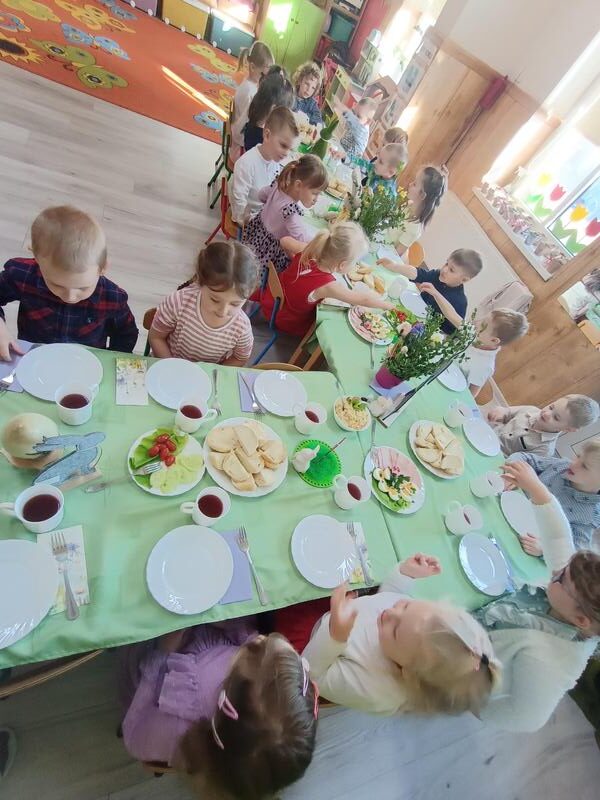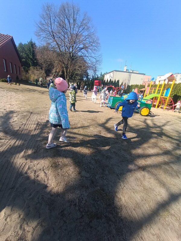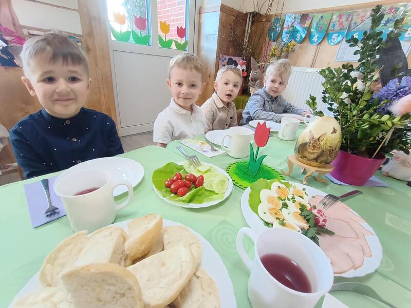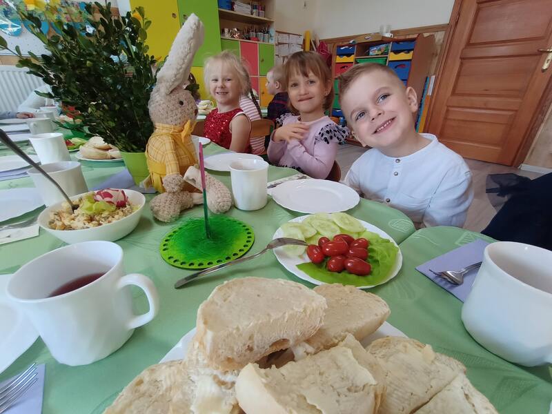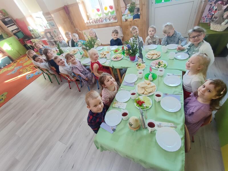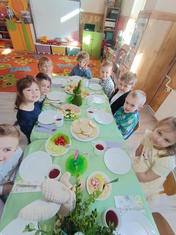 W naszym przedszkolu odbyło się uroczyste Śniadanie Wielkanocne, podczas którego dzieci wspólnie zasiadły do pięknie udekorowanego stołu. Była to wyjątkowa okazja do rozmów o tradycjach, symbolach świątecznych oraz o tym, jak ważne jest spędzanie czasu razem. Po śniadaniu na dzieci czekała pełna radości niespodzianka, wspólne poszukiwanie upominków od Zajączka Wielkanocnego na placu zabaw. Dodatkową atrakcją były zabawy z Zajączkiem, które wprowadziły jeszcze więcej świątecznej atmosfery. Dzieci brały udział w ruchowych konkurencjach, tańcach i wspólnych pląsach, dzięki czemu ten dzień stał się pełen energii, śmiechu i wiosennej radości. To był wyjątkowy czas, który pozwolił dzieciom poczuć magię świąt i cieszyć się wspólnym przeżywaniem tradycji.