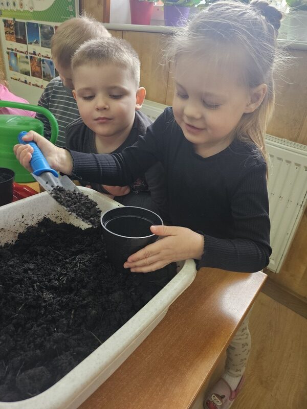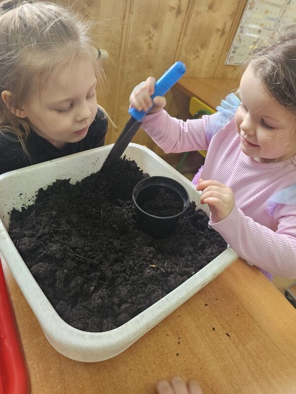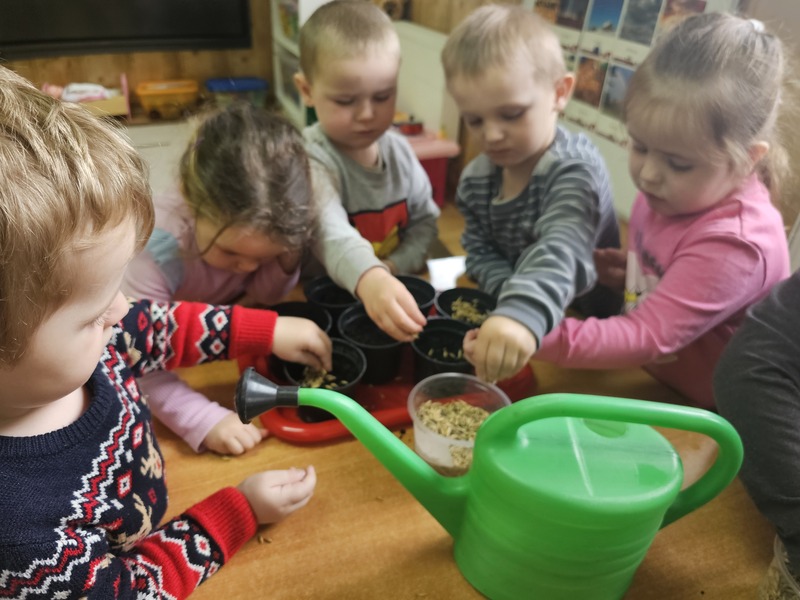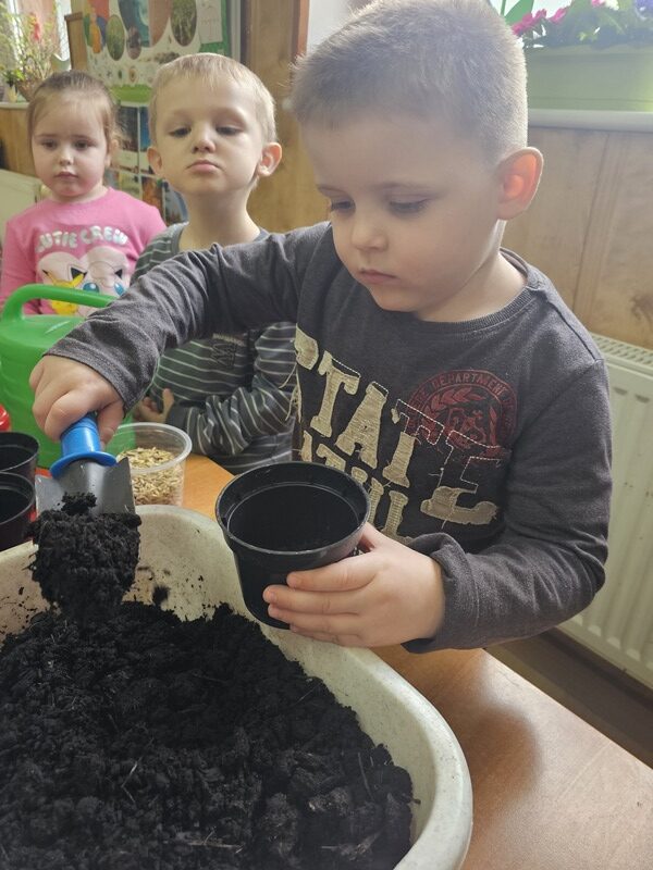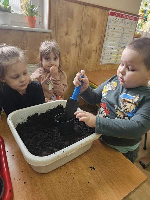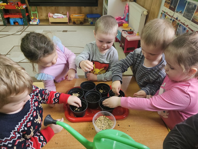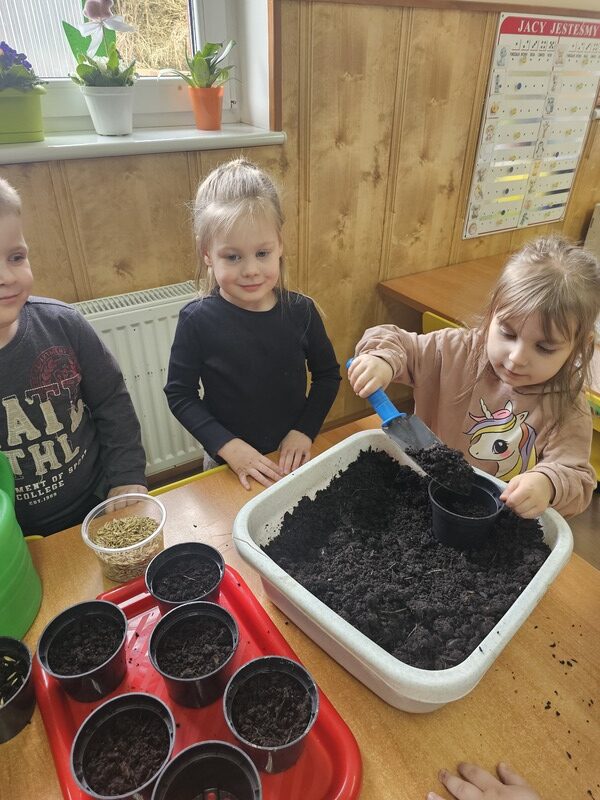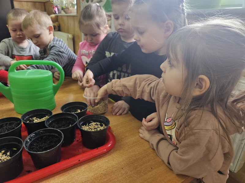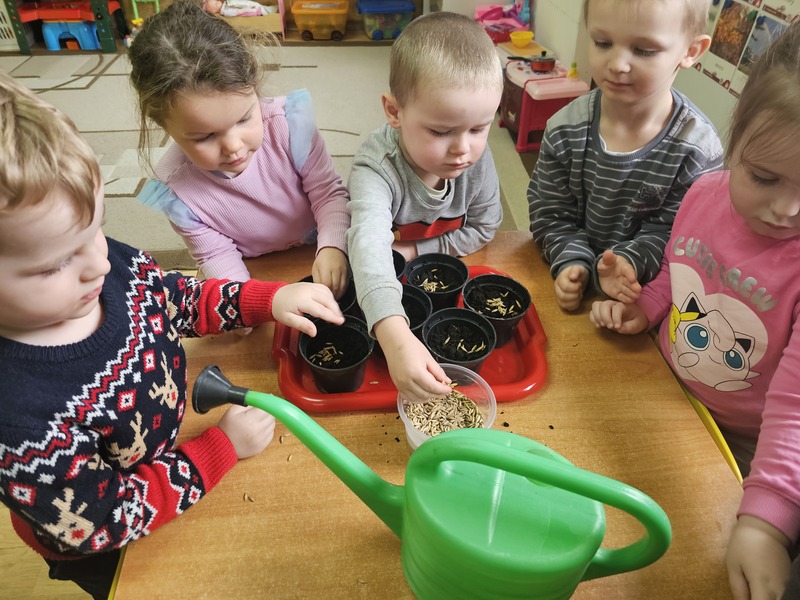 Dzieci z grupy Żabki w ramach przygotowań do Święta Wielkanocne wzięły udział w zajęciach związanych z sianiem owsa. Podczas spotkania przedszkolaki dowiedziały się, czego rośliny potrzebują do wzrostu, a następnie samodzielnie wysiewały ziarna do przygotowanych pojemników. Dzieci z dużym zaangażowaniem podlewały swoje uprawy i z niecierpliwością będą obserwować, jak z dnia na dzień pojawiają się pierwsze zielone pędy. To była nie tylko ciekawa lekcja przyrody, ale także piękne wprowadzenie do świątecznego czasu. 🌱🐣