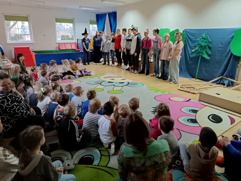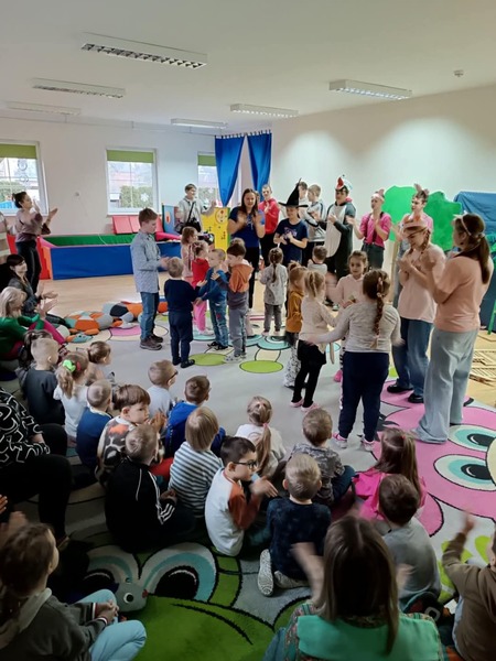 Dzieci z trzech najstarszych grup z zaciekawieniem śledziły losy bohaterów, a spektakl był pełen humoru, muzyki i pięknych kostiumów. Serdecznie dziękujemy za tę niesamowitą przygodę i czekamy na kolejne wspólne inicjatywy! 😄🙌🎉